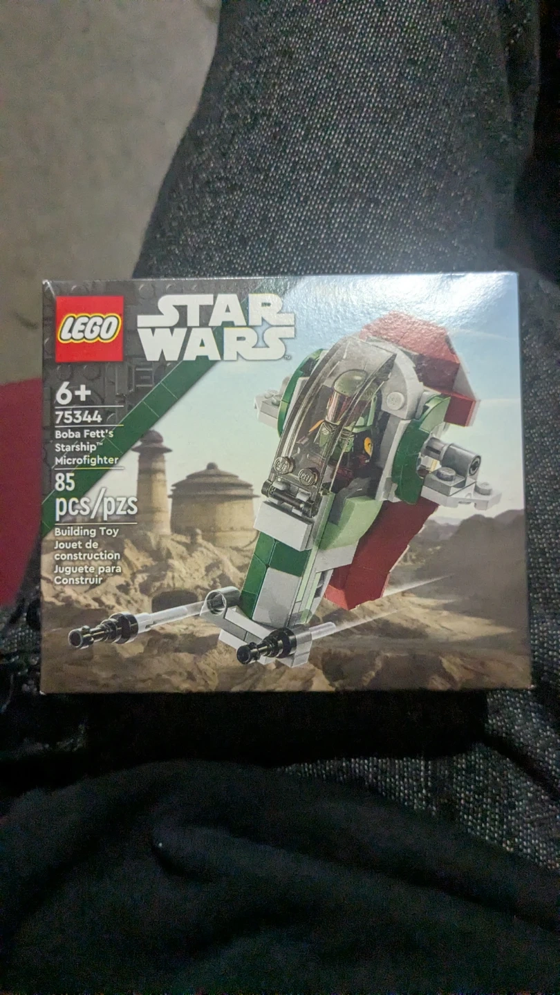 This LEGO Star Wars set features Boba Fett's Starship Microfighter. It includes 85 pieces for building. Recommended for ages 6+.