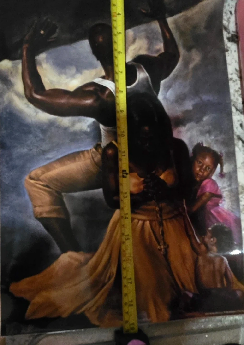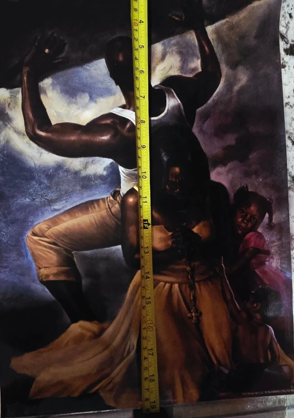 🥕This wall art print depicts a powerful scene of family support. The bottom right corner has a copyright notice for WAKART LLC PUBLISHING. The print measures approximately 19 inches in height. Strength of a woman laminated art piece. Comes rolled in a cylinder boxed case.