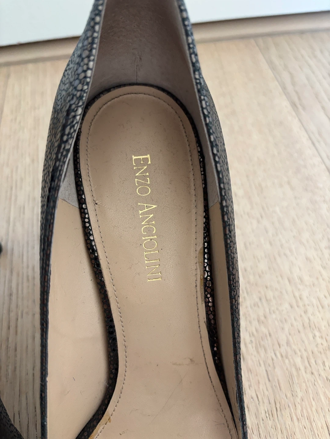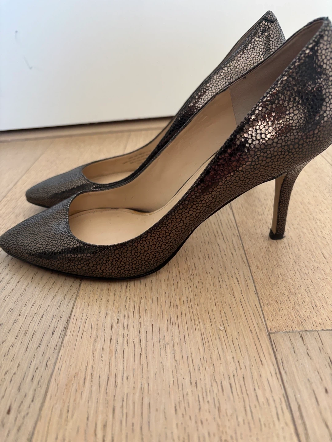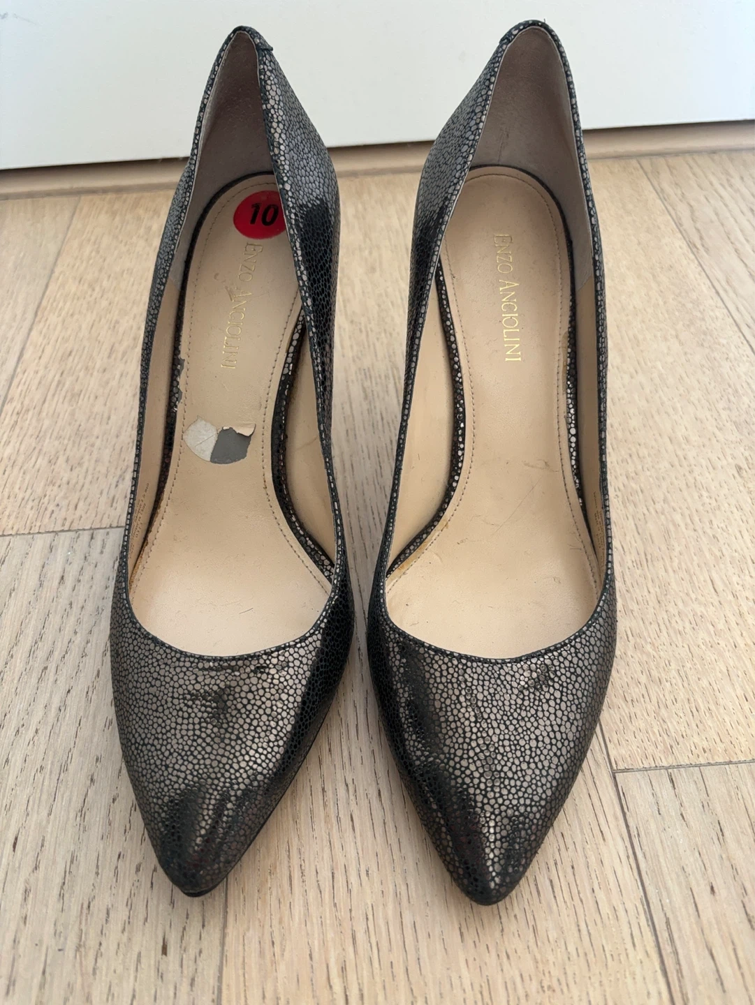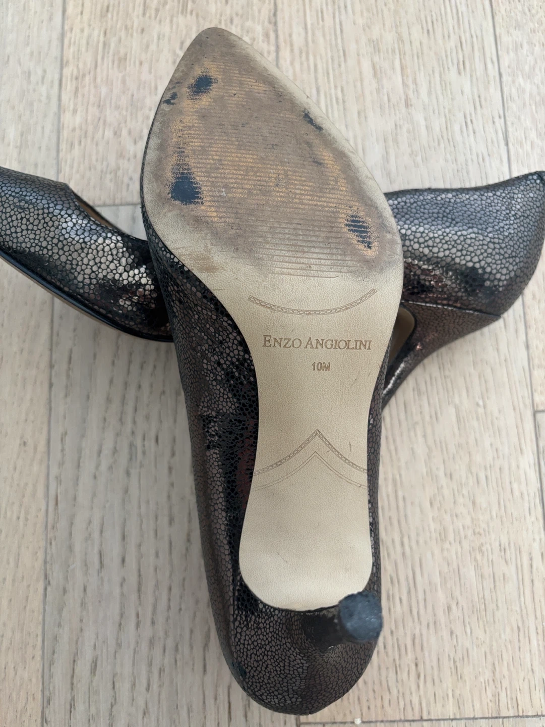 Stylish Enzo Angiolini heels with a textured metallic finish. These pumps feature a classic pointed toe and a comfortable heel height. Size 10M.