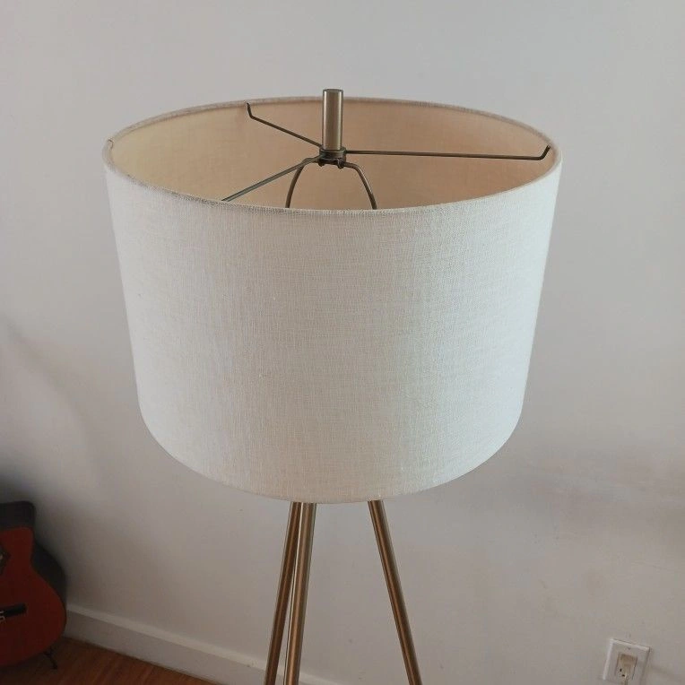 Elevate your space with this modern tripod floor lamp, designed to add a sleek, contemporary touch to any room. Its minimalist wood tripod base and fabric drum shade create the perfect blend of style and warmth — ideal for living rooms, bedrooms, or office spaces.