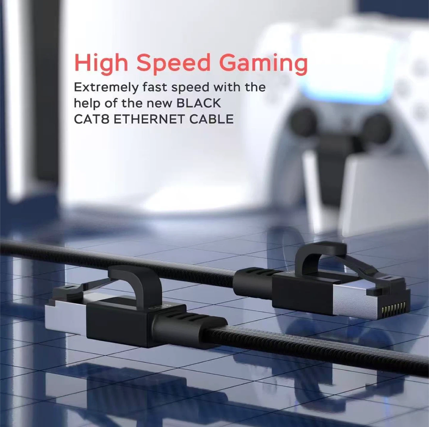 Ethernet Cable 50 ft, Cat 8 Ethernet Cable with 40Gbps 2000Mhz High Speed Ethernet Cable, Shielded Heavy Duty SFTP RJ45 LAN Cable Patch Cord for Modem Router Gaming PC PS4/5/6 Xbox, Black
