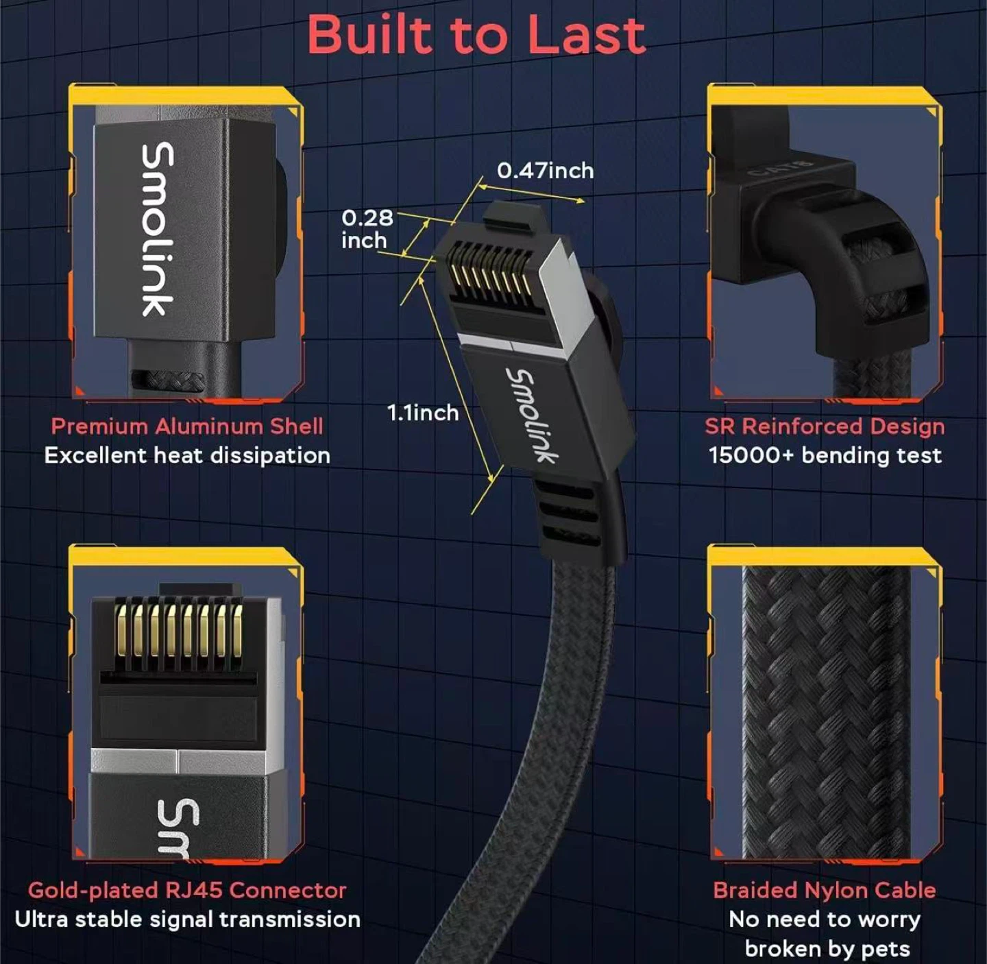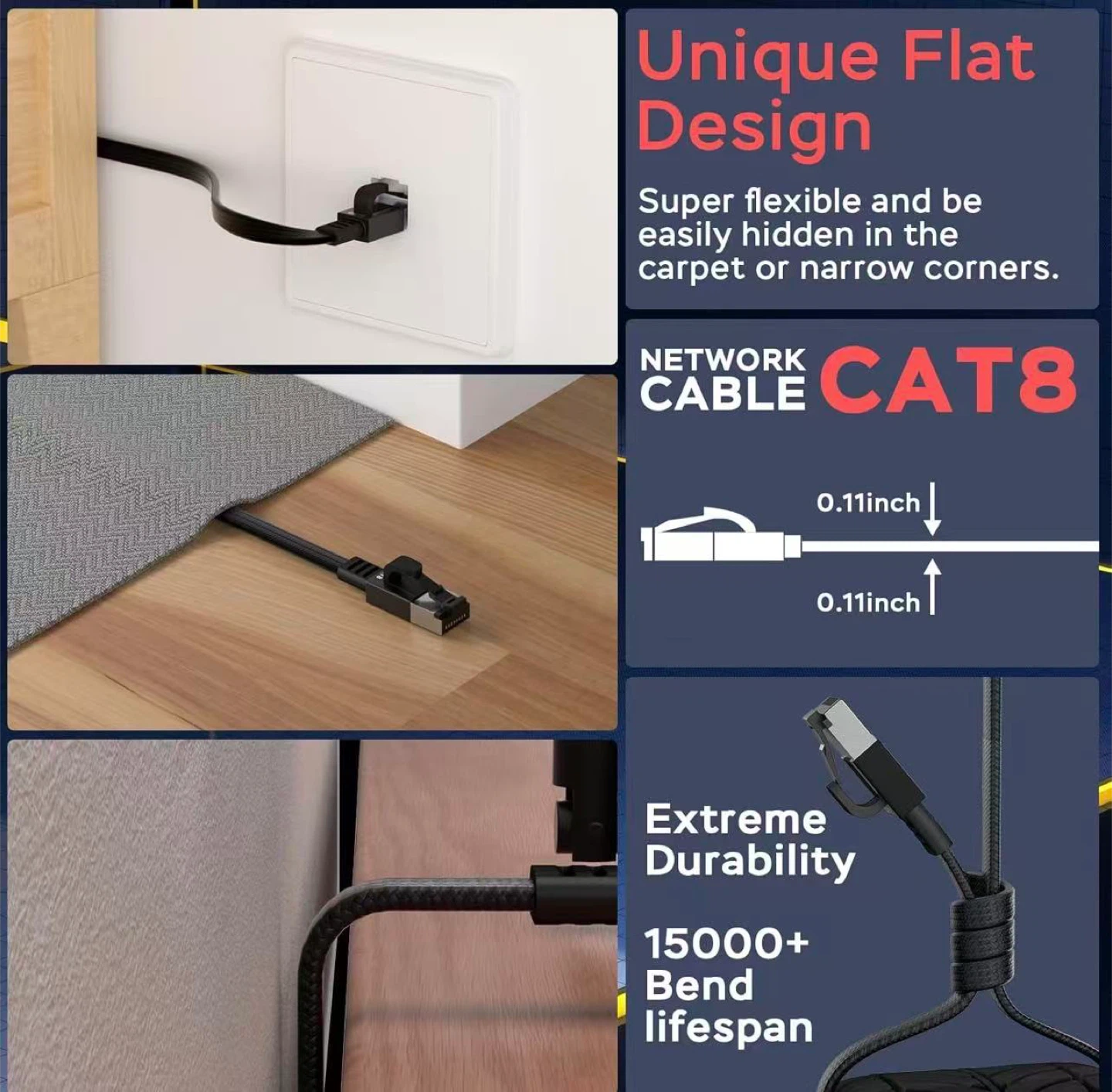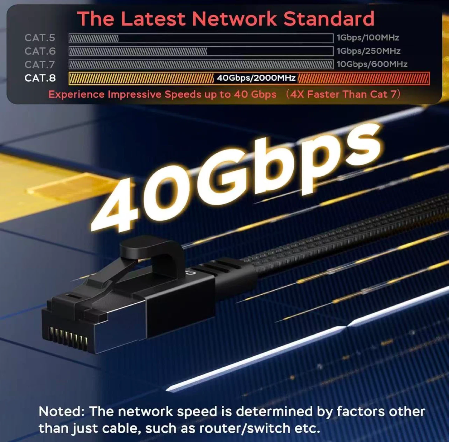 Ethernet Cable 50 ft, Cat 8 Ethernet Cable with 40Gbps 2000Mhz High Speed Ethernet Cable, Shielded Heavy Duty SFTP RJ45 LAN Cable Patch Cord for Modem Router Gaming PC PS4/5/6 Xbox, Black