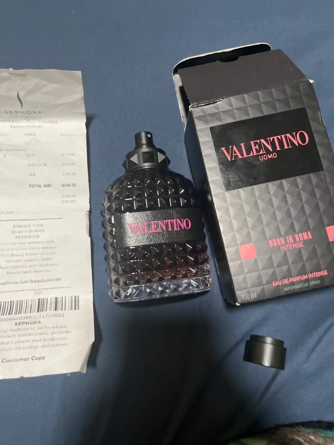This Valentino Uomo Born in Roma Intense Eau de Parfum is for men. It's a 100ml spray. The fragrance comes in a dark glass bottle with a black cap.