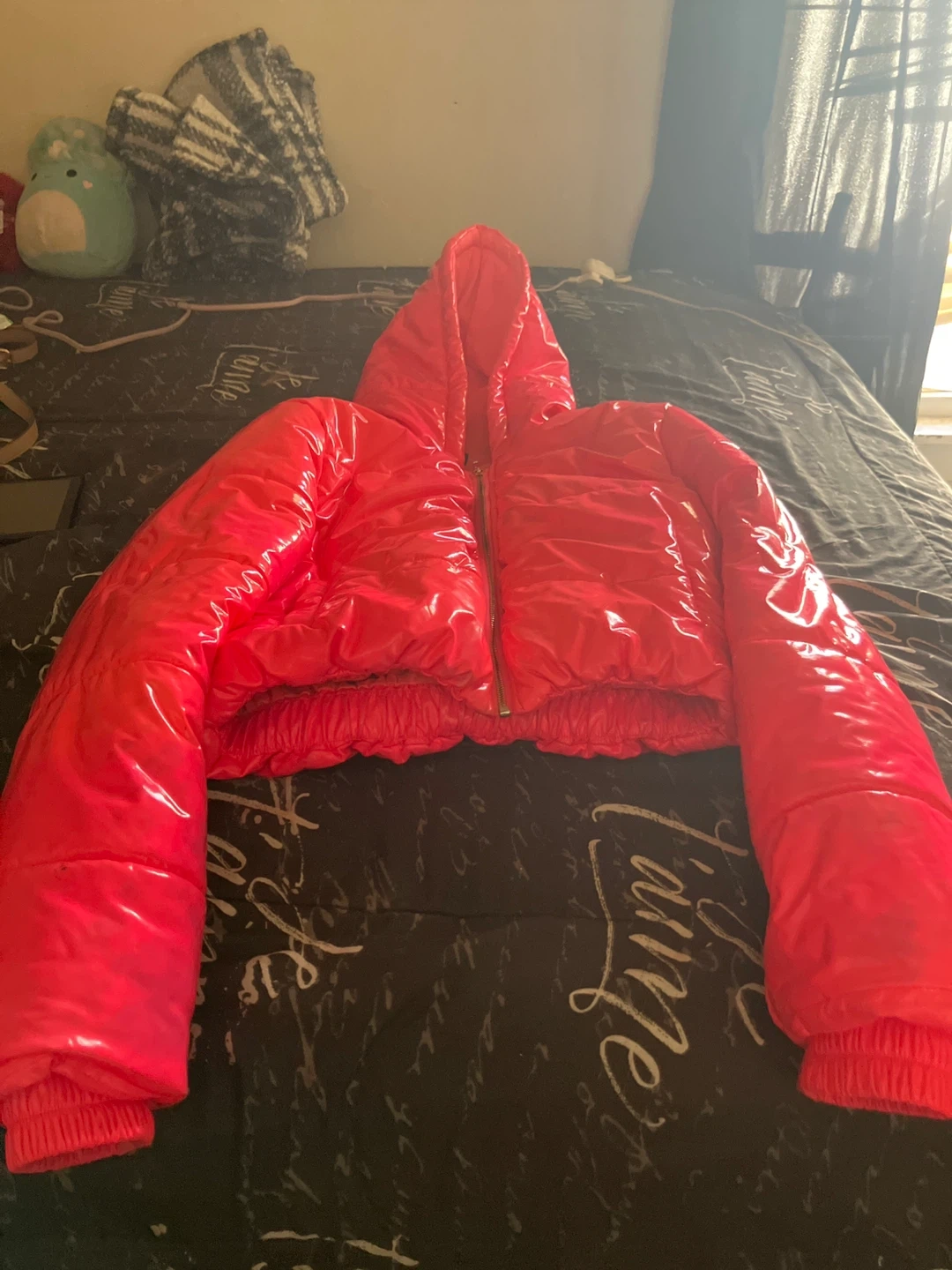Fashion Nova pink Shiny Cropped Puffer Jacket