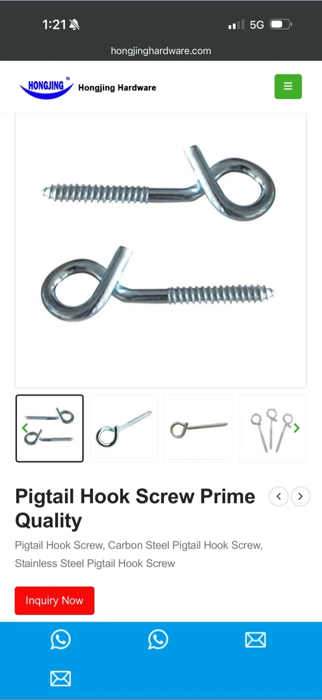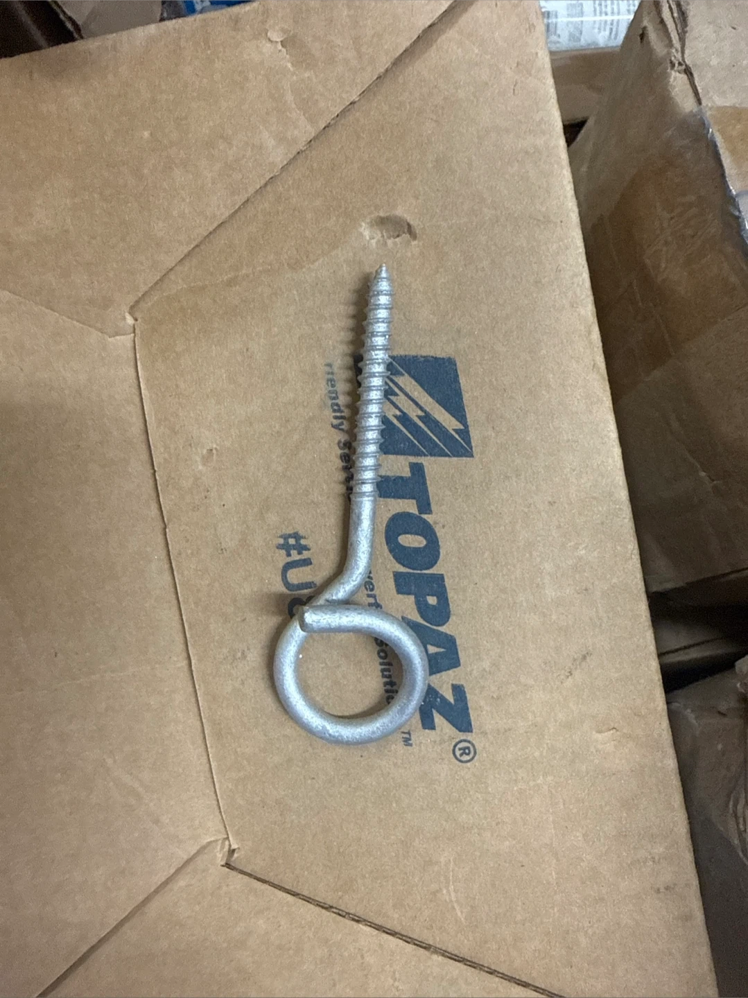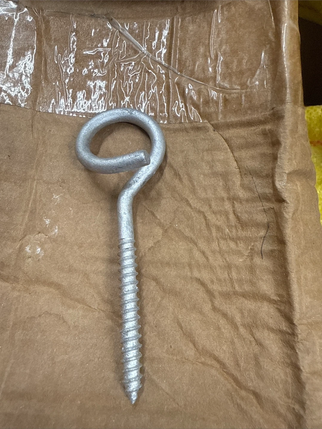 Pigtail hook screw made from carbon steel. These are good for various hanging needs around the house or workshop. They're about 2 inches long.