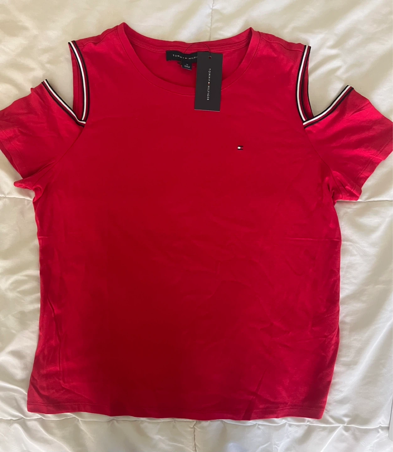 Tommy Hilfiger Red Cold Shoulder T-Shirt