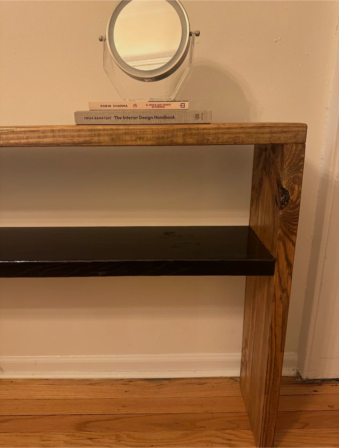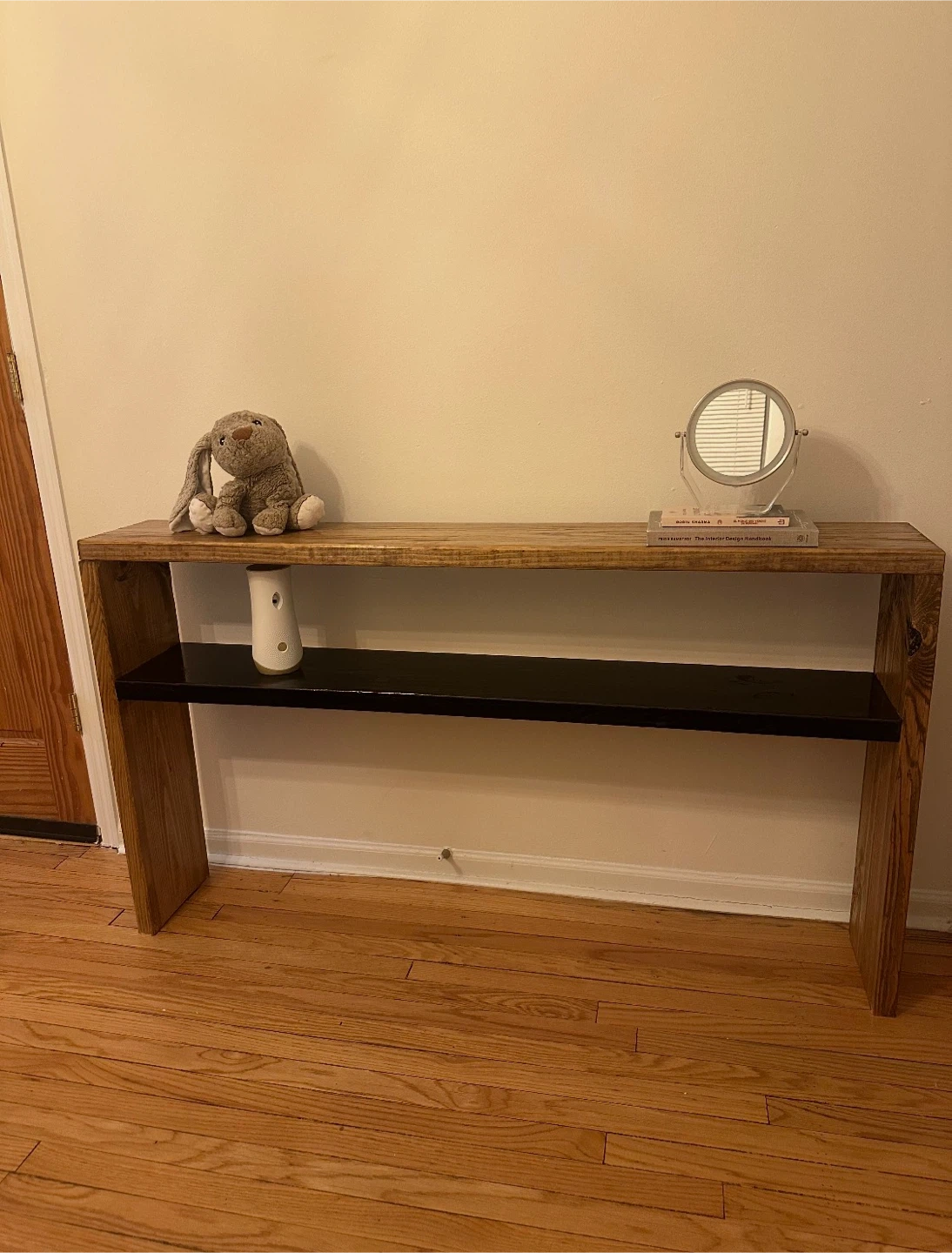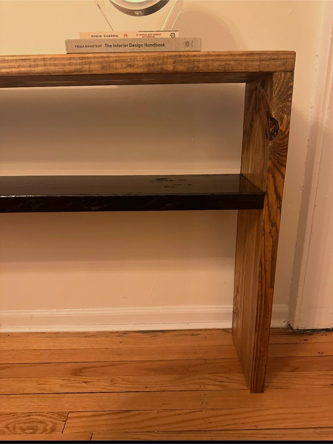 Wooden Console Table with Black Shelf