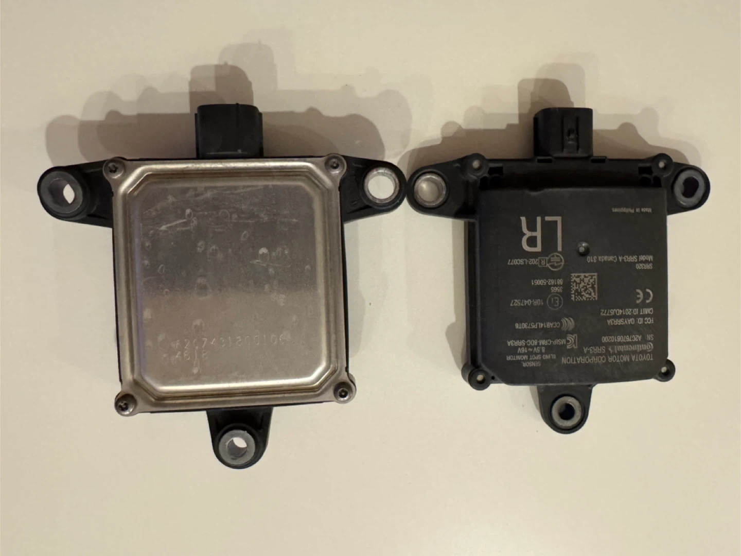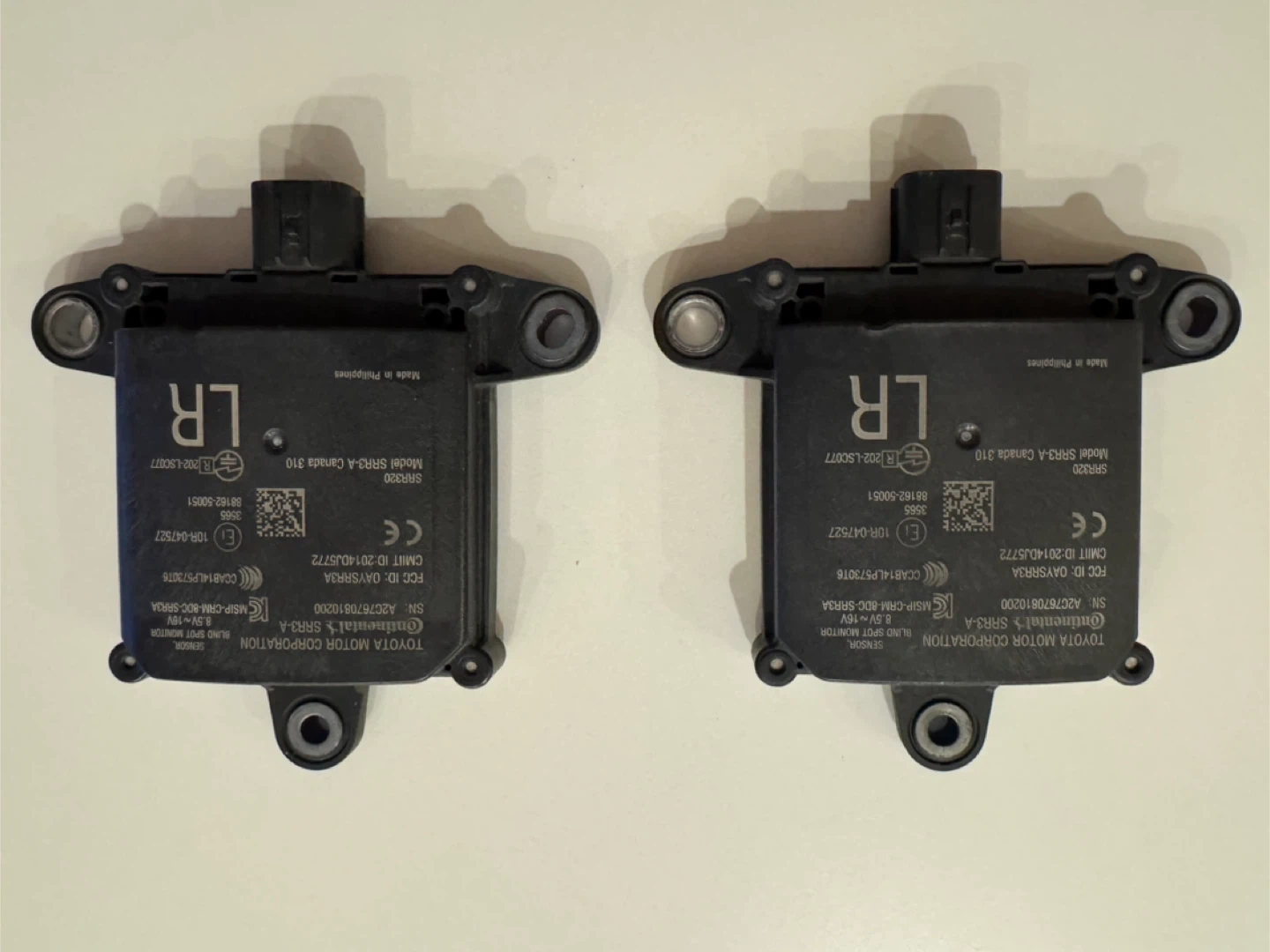 Rear Blind spots sensors Lexus LS 500, Two Toyota Continental SRR3-A Camera Sensors for the rear position. These sensors are for automotive use and are manufactured by Continental. Made in the Philippines.