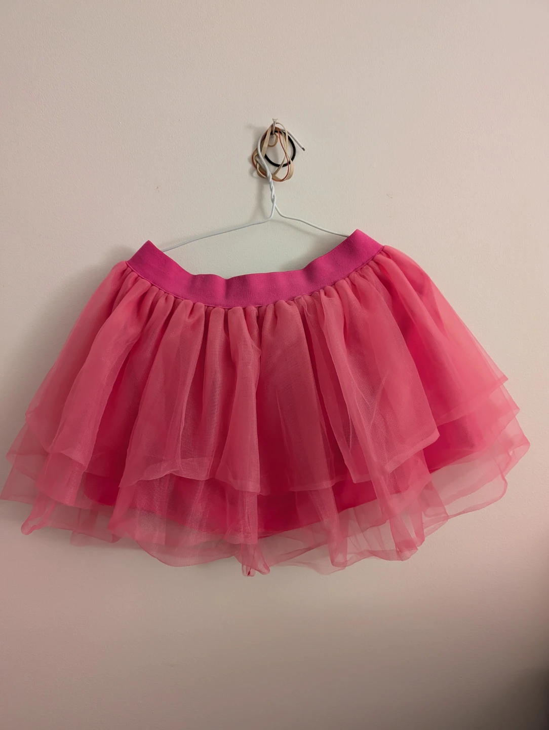 Selling a Spirit Halloween pink tulle skirt. It's an adult size SM/MD (4-8). Perfect for a costume or fun outfit! Bought at $23.9, selling half price