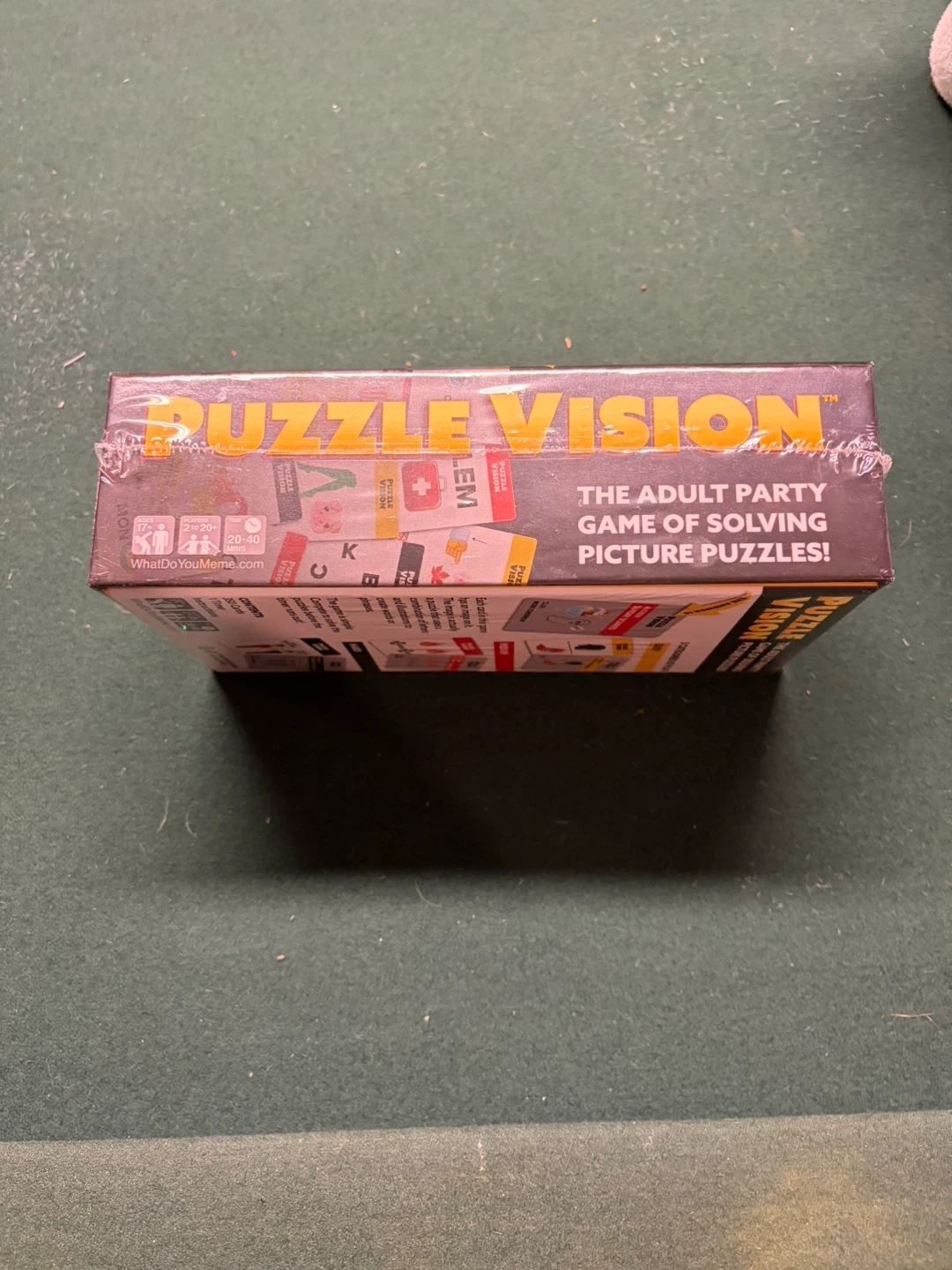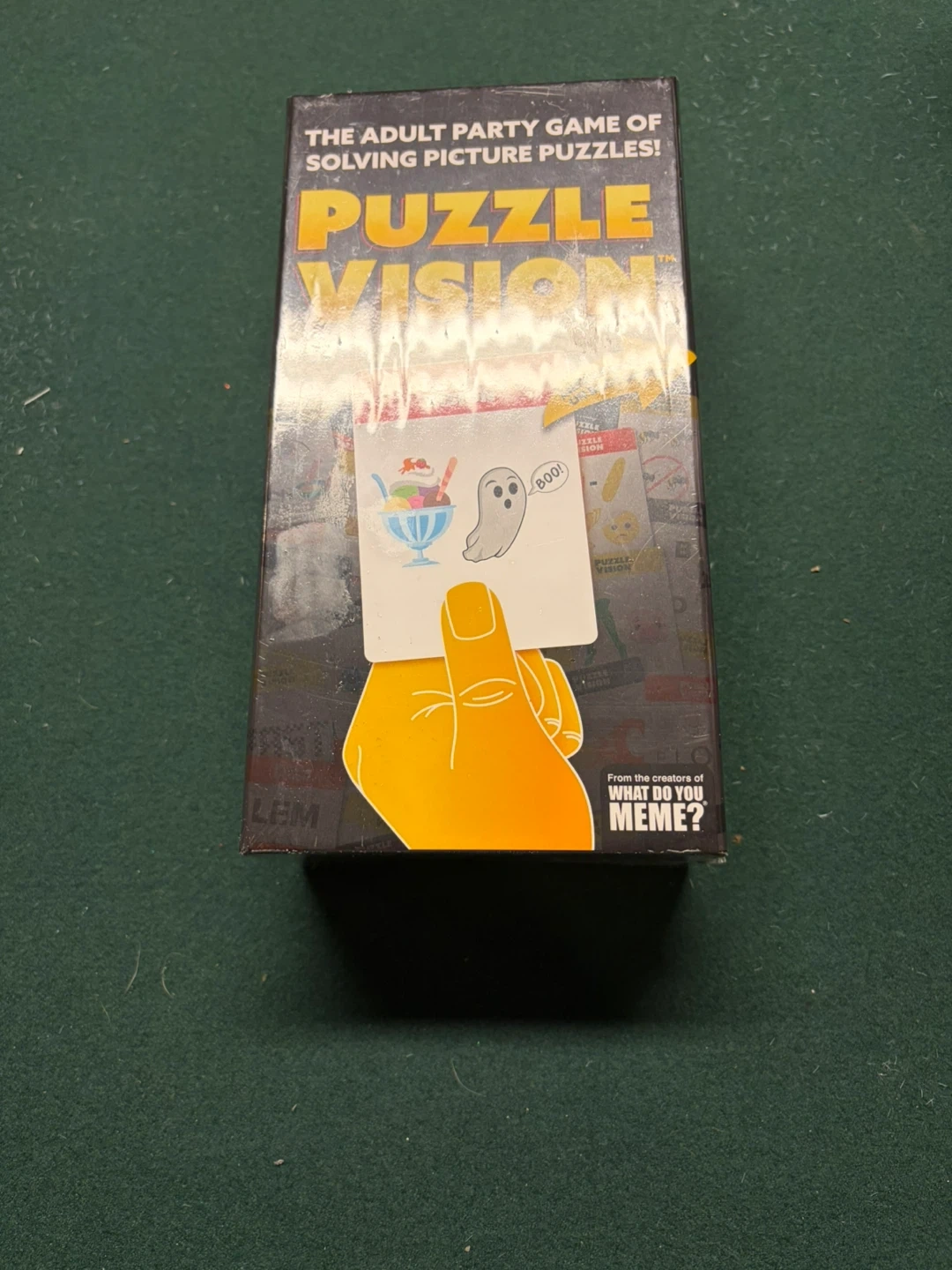 This is the adult party game Puzzle Vision. It's a game of solving picture puzzles! The game includes 350 cards and instructions. It's designed for ages 17 and up, 2-6 players, and plays in 20-40 minutes.brand new see pictures for information