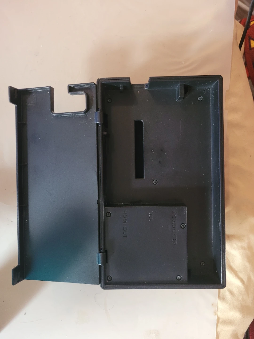 This is a Nintendo Switch dock. It connects your Nintendo Switch to a TV and charges the console. Includes HDMI OUT and USB ports.