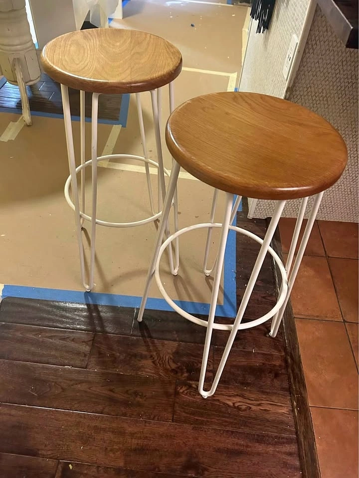 Very nice West Elm stools for sale, made of wood and metal, very sturdy! Approx 28” tall. Love these but not the right size for my counter!