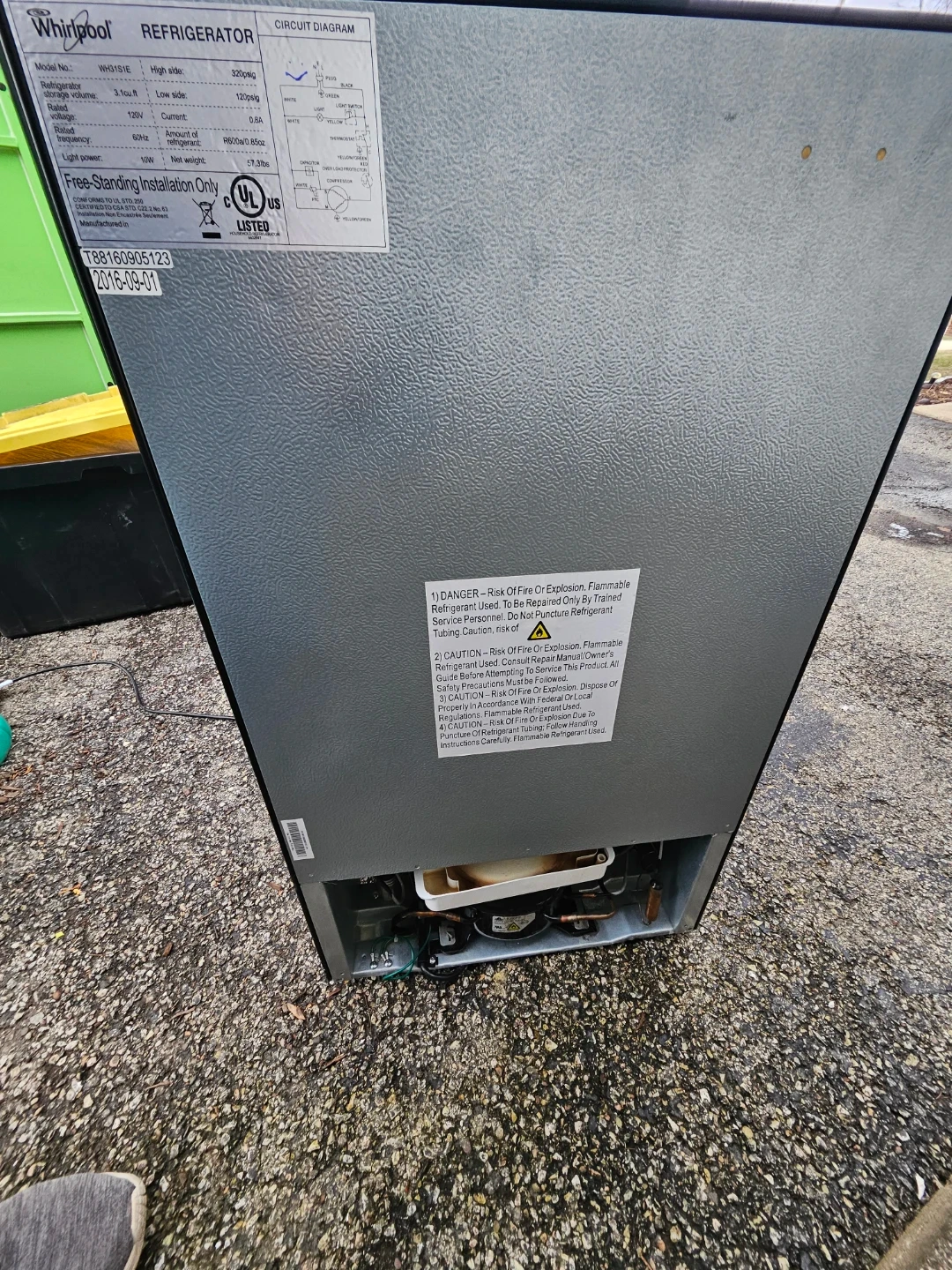 Selling a Whirlpool compact refrigerator! It's perfect for a dorm, office, or small apartment. This fridge is in good condition and ready to keep your drinks and snacks cold. It's a convenient size and energy-efficient too!