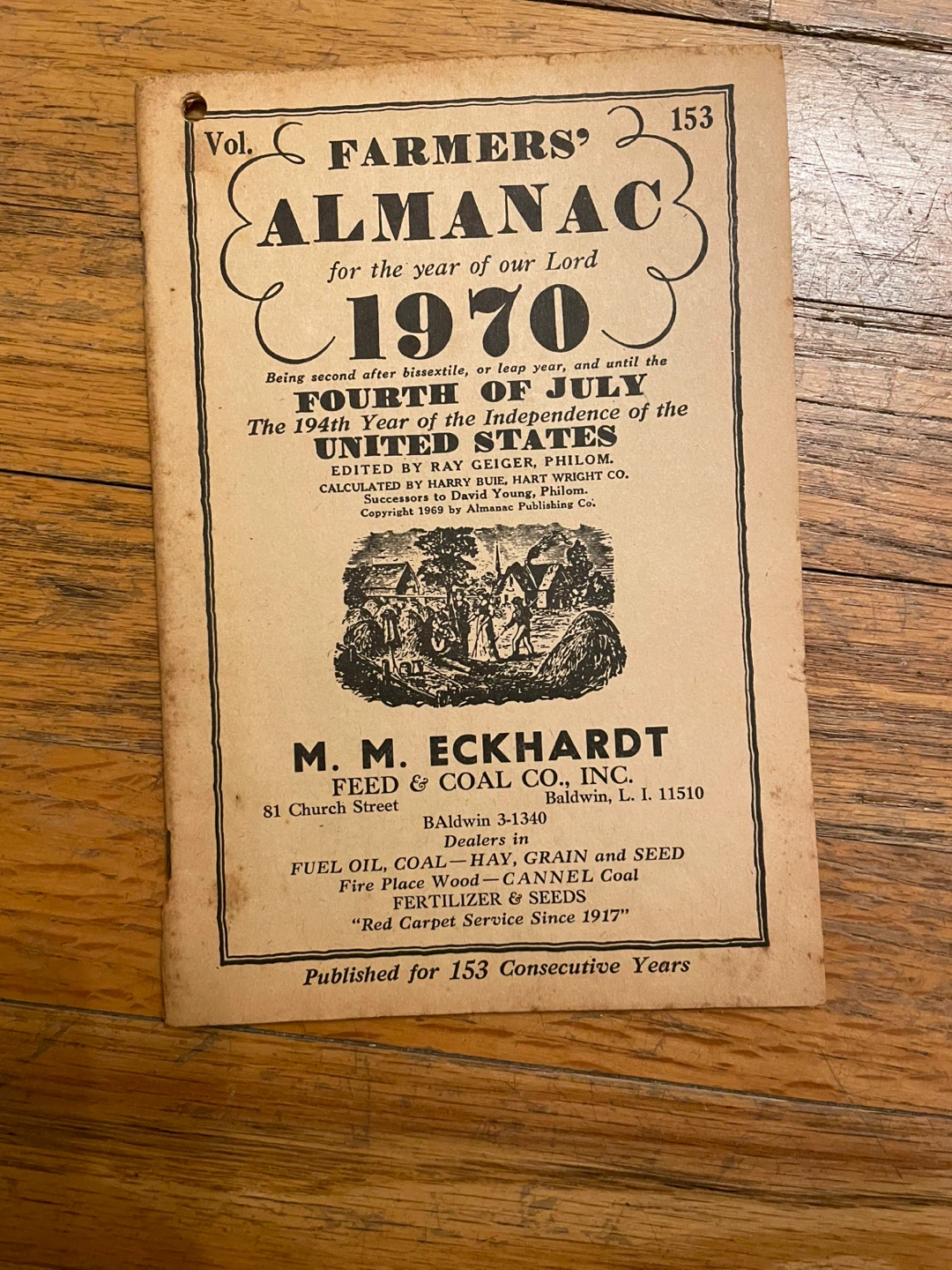 This is the 1970 Farmers' Almanac, for the year of our Lord 1970. It was published by Almanac Publishing Co. It includes information for the 194th year of the Independence of the United States.
