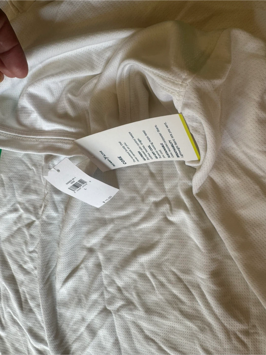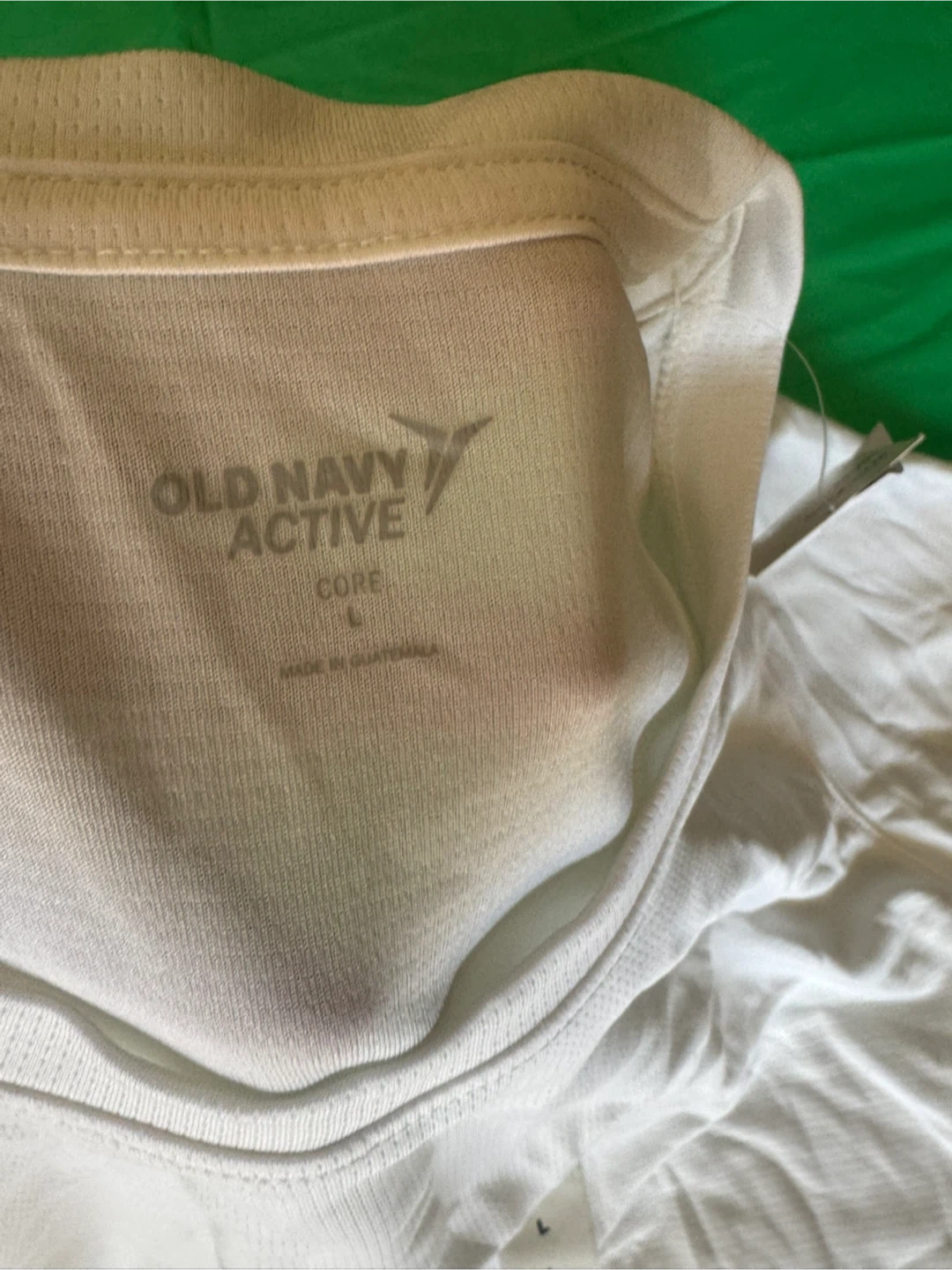 Esta es una camiseta blanca de Old Navy Active. Es de talla grande y está hecho de un tejido transpirable que absorbe la humedad. ¡Genial para hacer ejercicio talla L llévala a $6