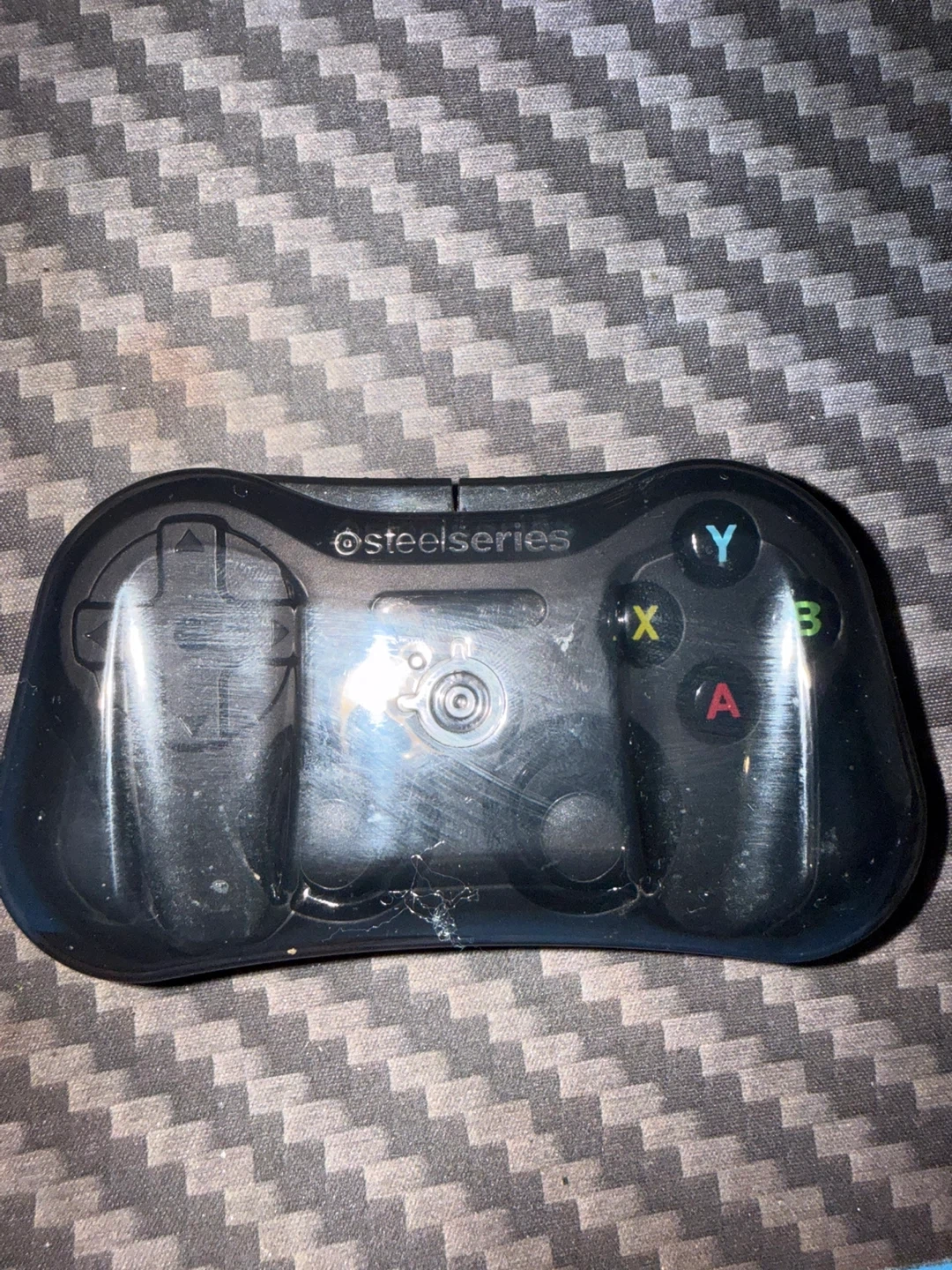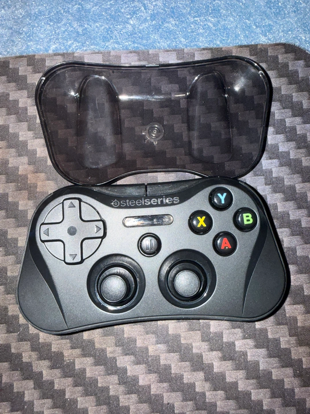 This is a SteelSeries wireless gaming controller. It includes a protective carrying case. It's great for PC gaming! The controller's design is ergonomic for comfortable play.