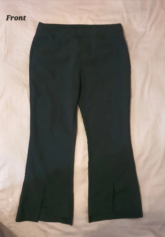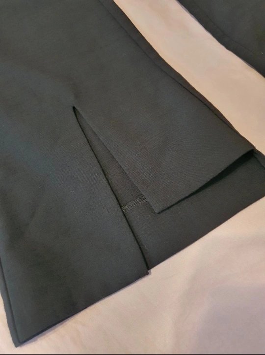 Black flare stretch pants with front slit
