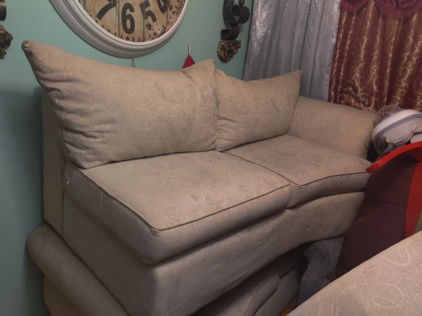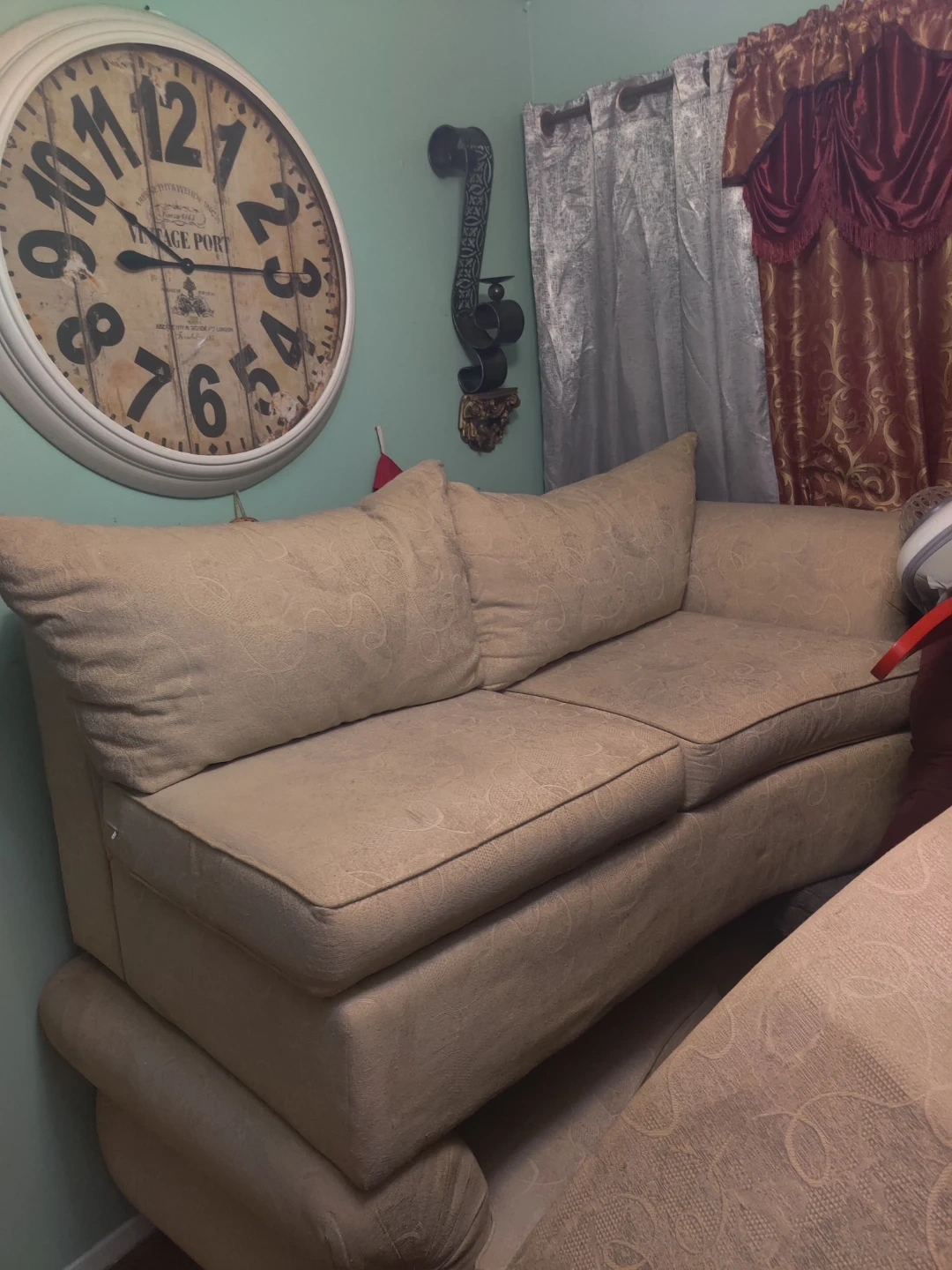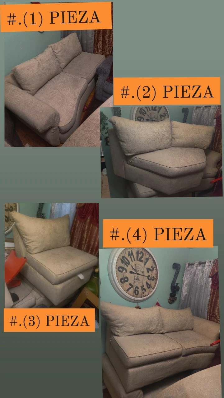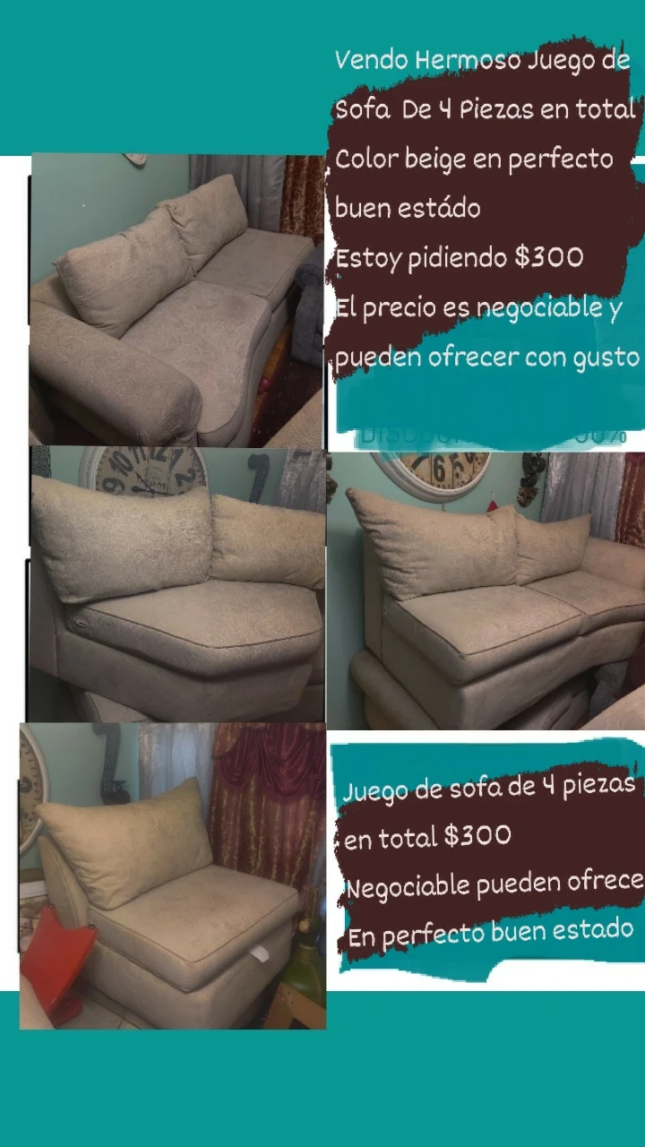 Selling a beige 4-piece sofa set in good condition. The set includes multiple seating pieces to arrange as needed. Fabric features a subtle pattern.