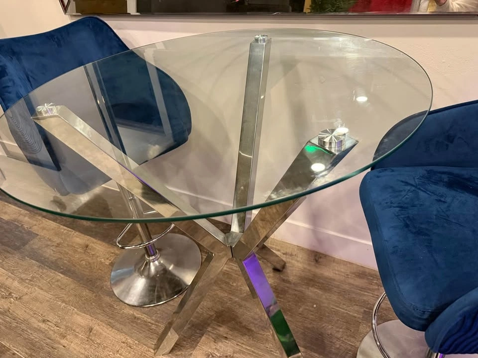 High Dining Glass Table with Two Barstool Chairs