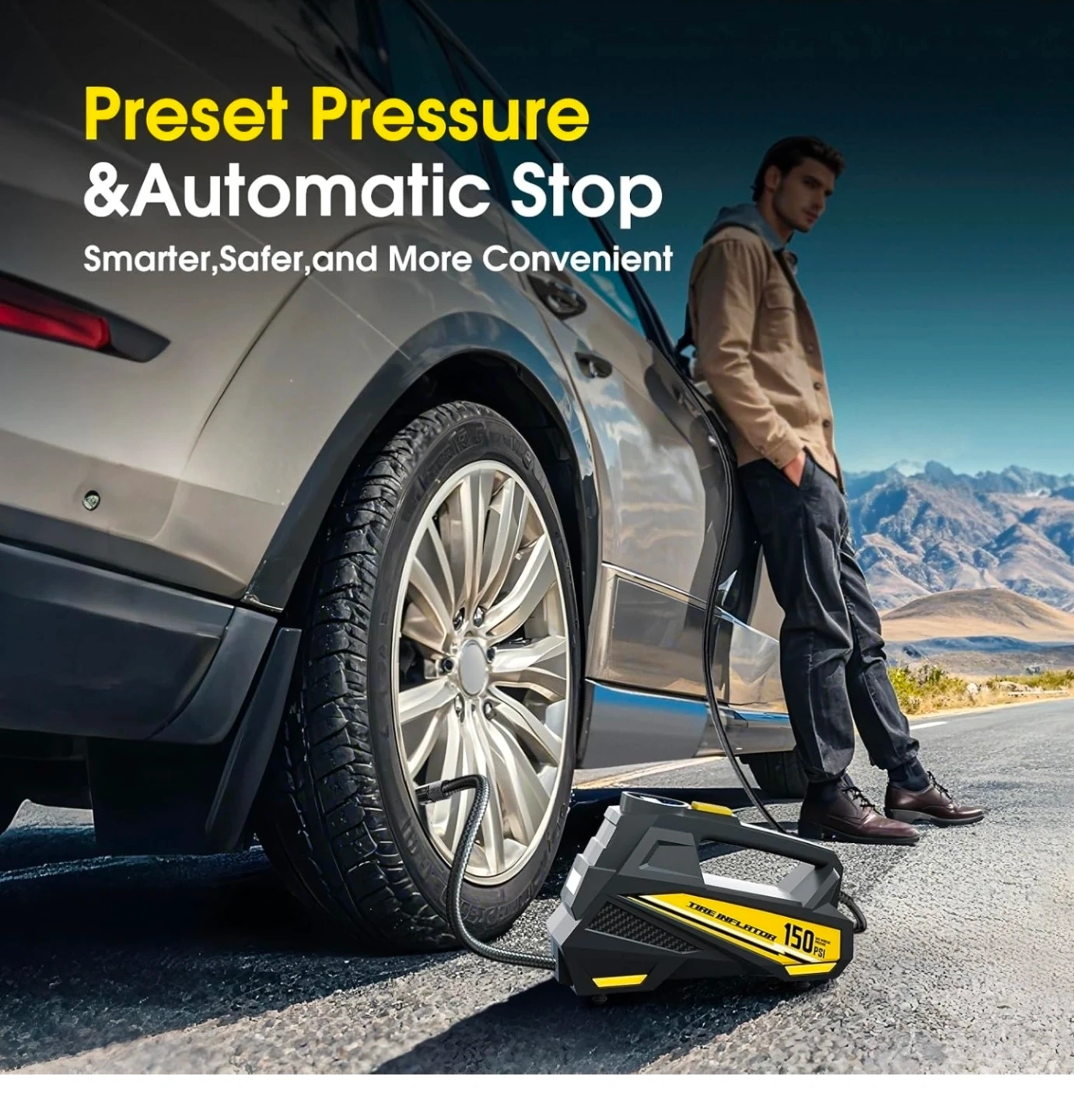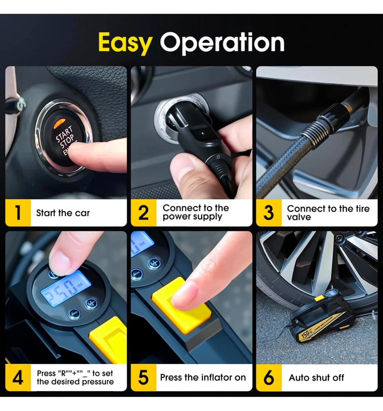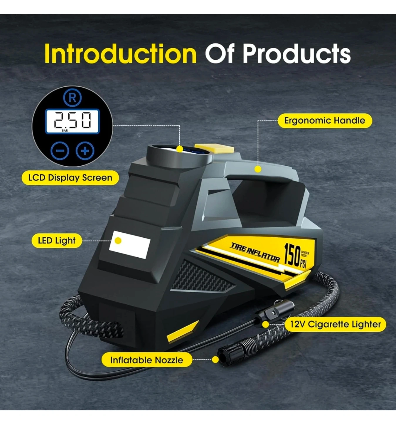Tire Inflator Portable Air Compressor- 12V DC Air Pump for Car Tires with 150PSI LCD Digital Gauge & Emergency LED Light,Auto Tire Pump for Cars,Motorcycles,Bikes,Balls