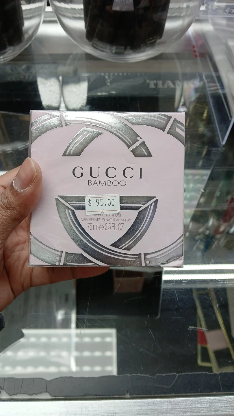 This is Gucci Bamboo Eau de Parfum for women. It's a natural spray, presented in a 75ml (2.5 FL. OZ.) bottle. The fragrance is housed in its original packaging.