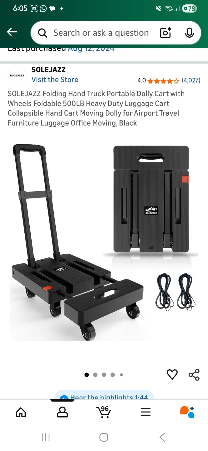 Selling a SOLEJAZZ folding hand truck portable dolly cart. It has wheels and is foldable, making it easy to store and transport. It can handle up to 500LB, making it a heavy-duty option for moving luggage, furniture, or office supplies. In great condition.