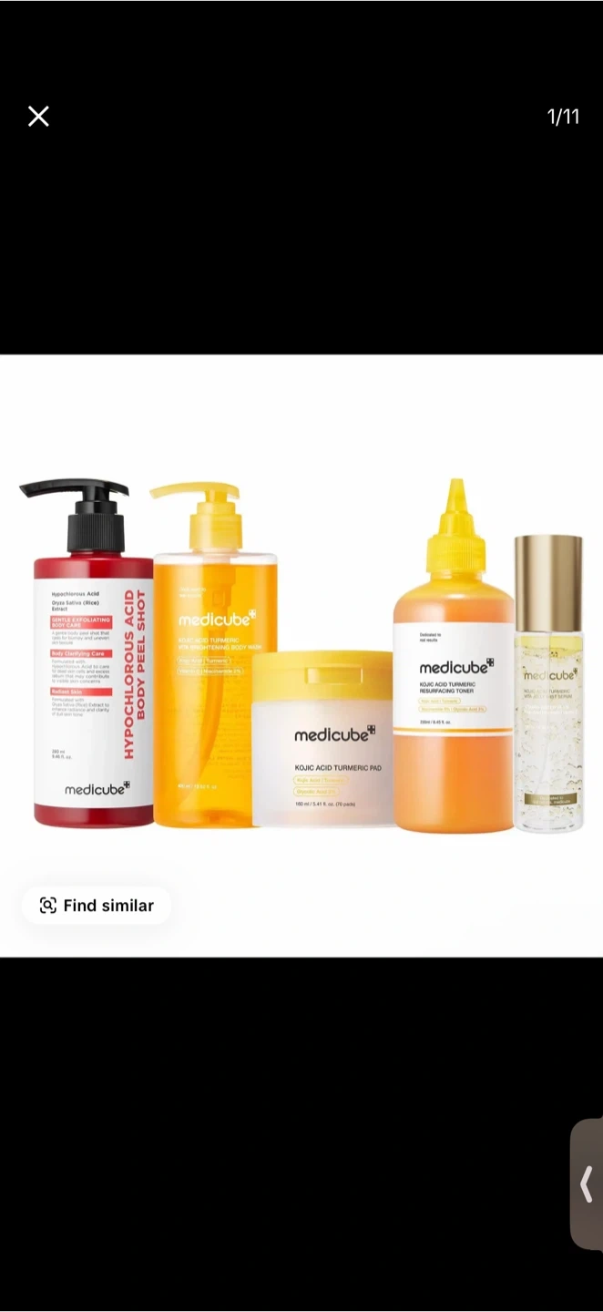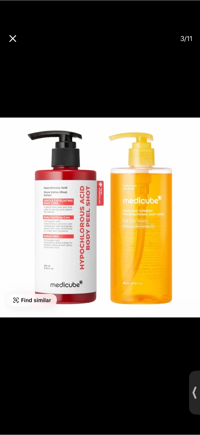 NEW] [medicube] Smooth & Clear Body Care Set | Hypochlorous Acid Body Peel Shot, Kojic Acid Turmeric Body Wash, Toner Pad, Toner, Mist | Exfoliating for Dead Skin Cells & Excess Sebum & Clearing for After Spots, Texture & Uneven Skin Tone | K-Beauty This body peel shot exfoliates, purifies, and smooths skin. It contains Hypochlorous Acid and Rice Extract. Bottle size is 280ml.