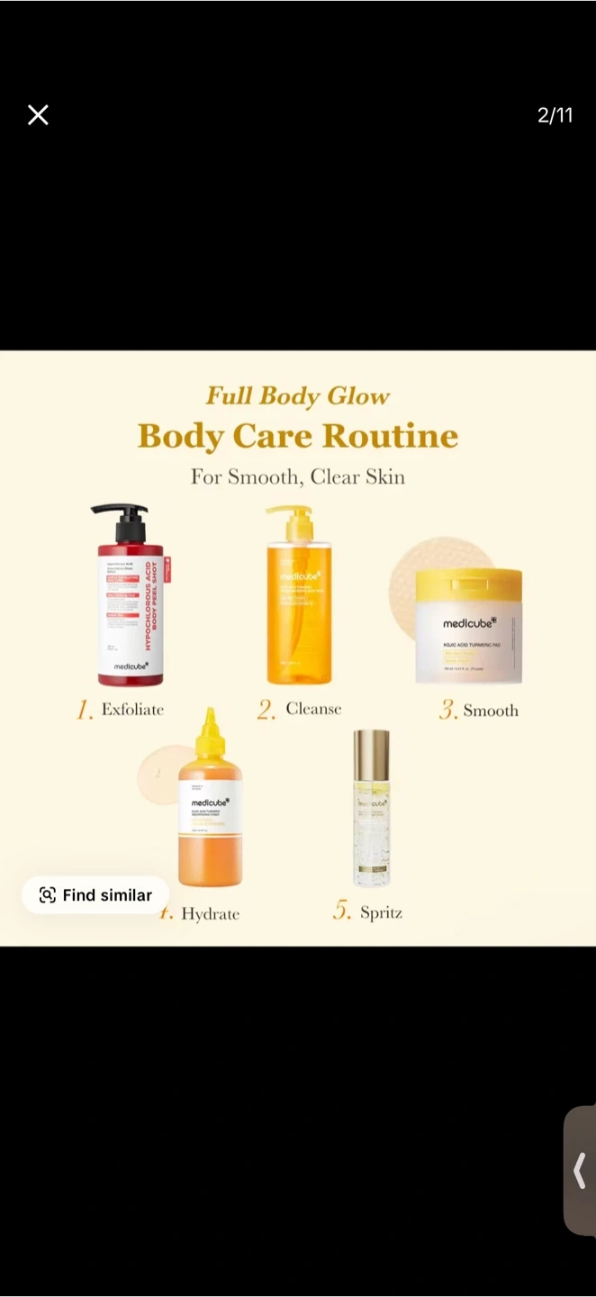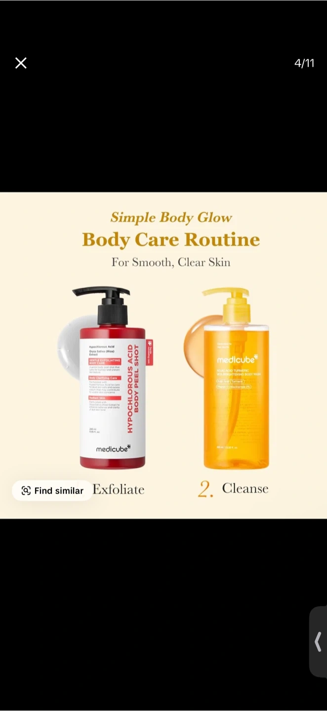 NEW] [medicube] Smooth & Clear Body Care Set | Hypochlorous Acid Body Peel Shot, Kojic Acid Turmeric Body Wash, Toner Pad, Toner, Mist | Exfoliating for Dead Skin Cells & Excess Sebum & Clearing for After Spots, Texture & Uneven Skin Tone | K-Beauty This body peel shot exfoliates, purifies, and smooths skin. It contains Hypochlorous Acid and Rice Extract. Bottle size is 280ml.