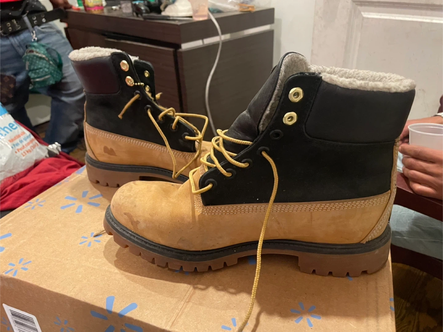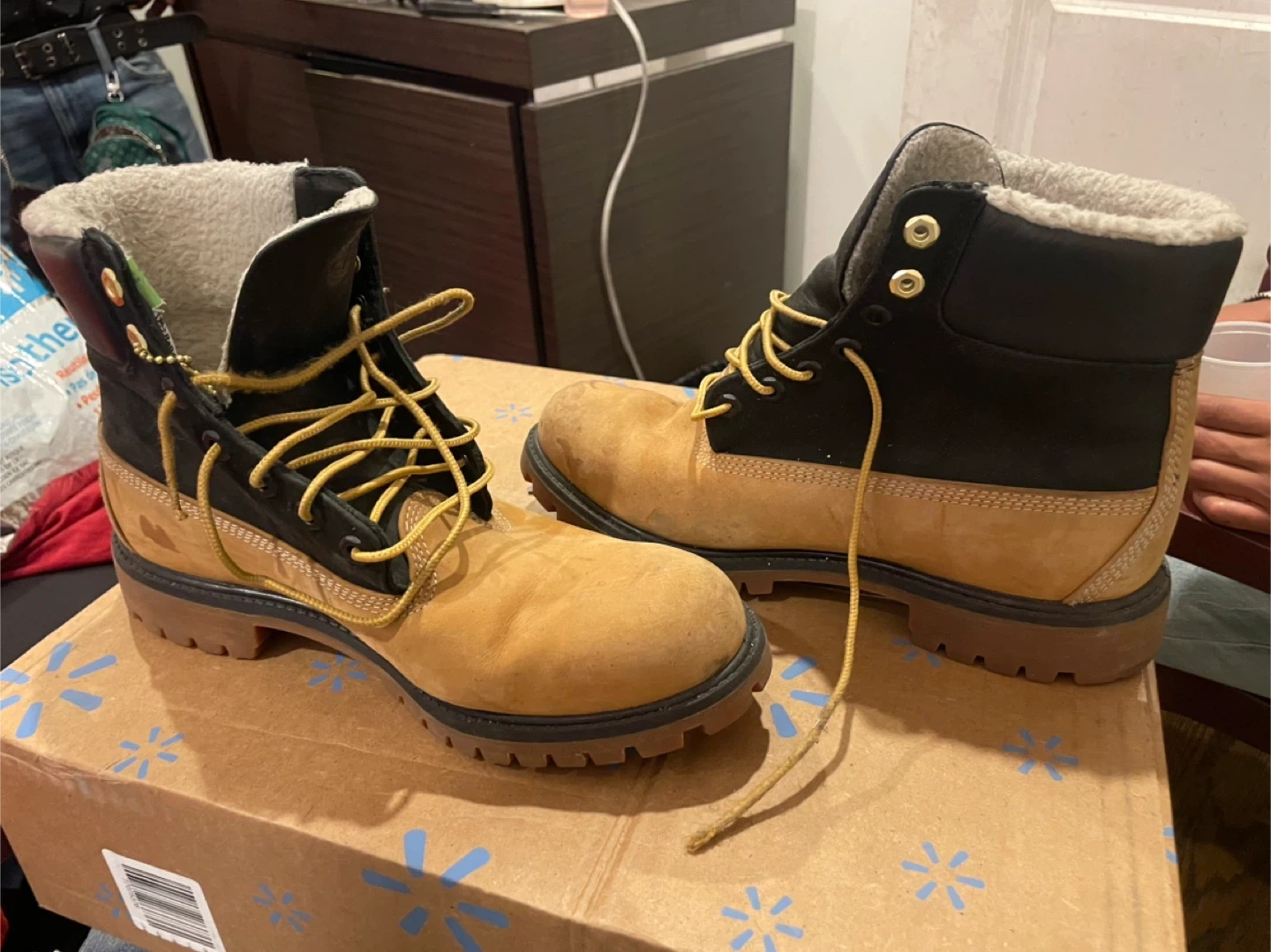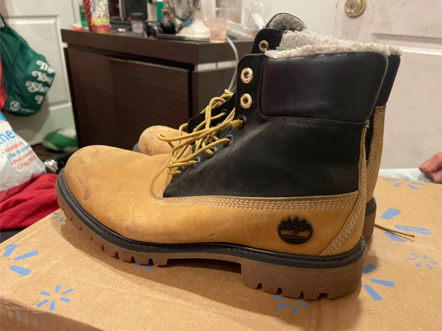 Selling a pair of Timberland waterproof leather boots! They are in good condition and ready for a new owner. These boots are a size 10 and feature a classic design with a tan and black color scheme. They are perfect for everyday wear or outdoor activities