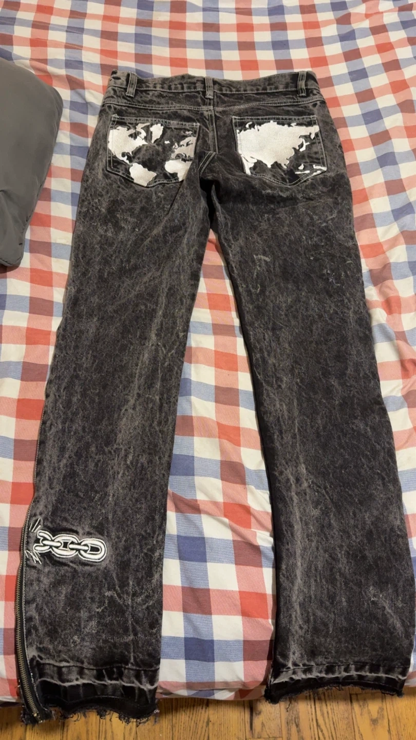 60Jeans with a unique design! These jeans feature a stylish, acid-wash look and distinctive graphic details. Perfect for adding an edgy touch to your wardrobe