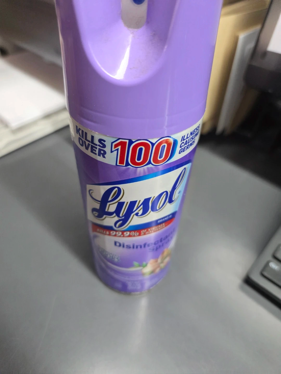 Lysol disinfectant spray kills over 100 illness causing germs. It's a spray that kills 99.9% of viruses and bacteria. Use this spray to disinfect surfaces in your home.