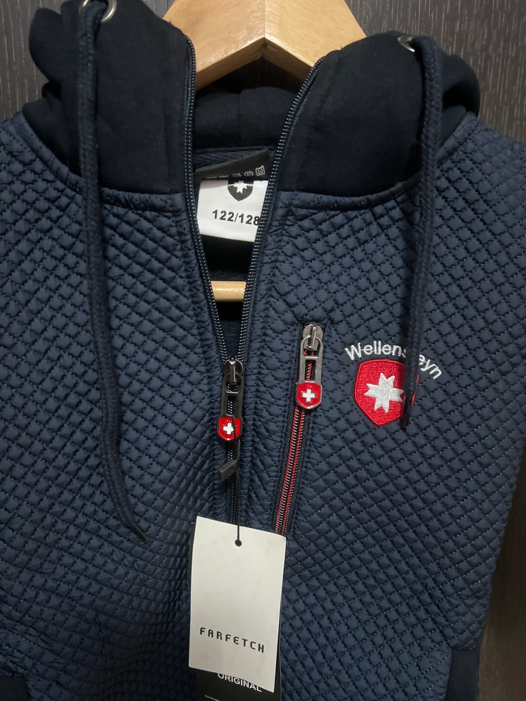Selling a Wellensteyn kids hoodie in size 122/128. It features a quilted front and the Wellensteyn logo on the chest. Great for keeping your little one warm and stylish!
