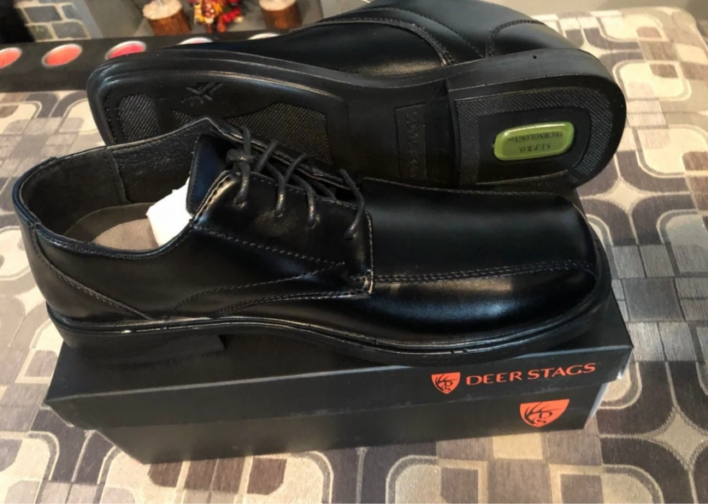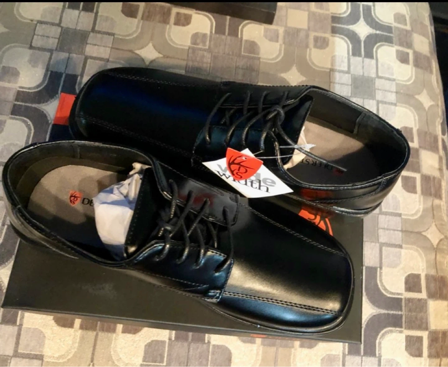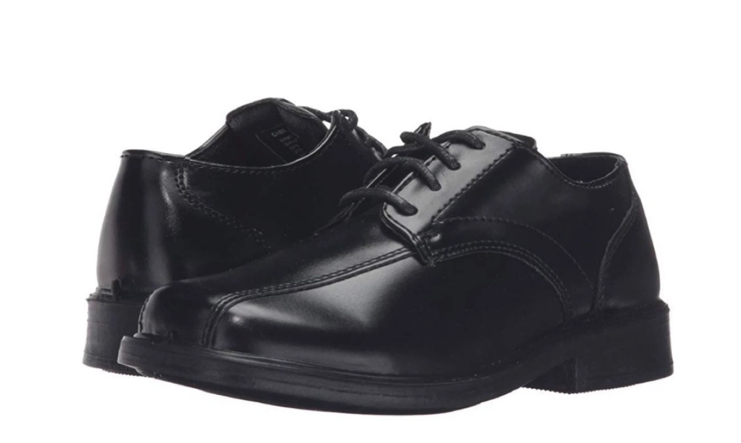 Size 9.5. Toddler to 7.5 big kids Classic black oxford shoes for kids. They're made with a synthetic leather upper and have a durable sole. These shoes are great for formal events or everyday wear.