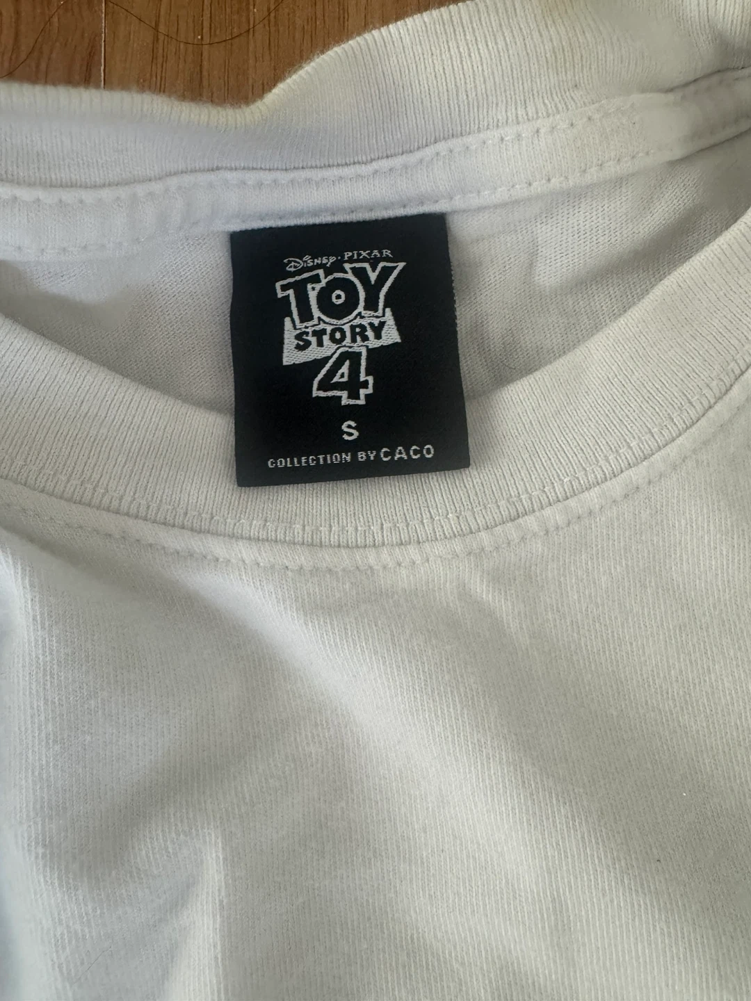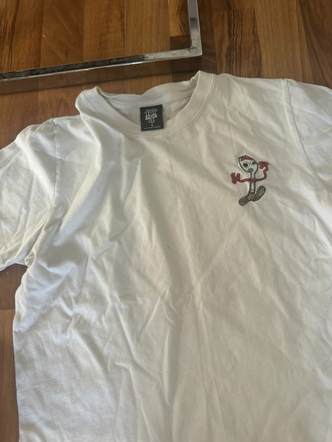 White graphic t-shirt featuring a Toy Story 4 character design. Size is small. Cotton material.