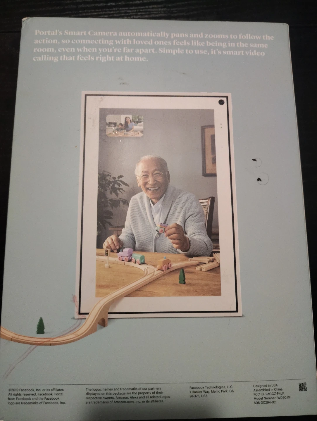 Selling a Facebook Portal 10" smart video calling device. It's designed to fit your home with Alexa built-in. The Portal's Smart Camera automatically pans and zooms to follow the action, so connecting with loved ones feels like being in the same room, even when you're far apart. Simple to use, it's smart video calling that feels right at home. Model Number WD50JM.