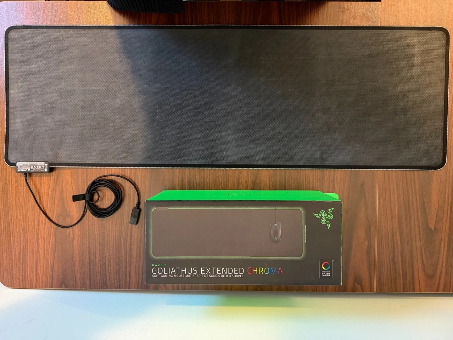 Lightly used, well taken care of. RGB Chroma lighting fully functional. May present minor surface wear from light use. Stored in a smoke-free and pet-free home. Large/XL, Illuminated, Non-Slip, Gaming.
