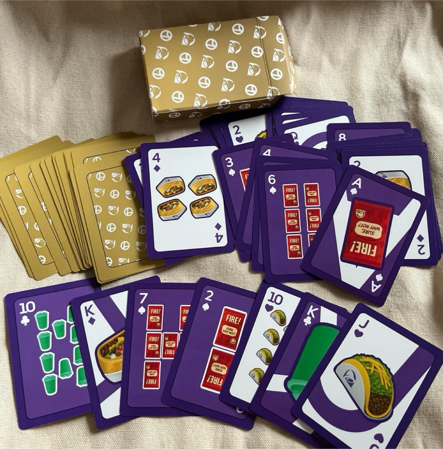 Selling a deck of Taco Bell themed playing cards! They come with the original box. The cards are in great condition and feature fun Taco Bell designs on each card. Perfect for any Taco Bell lover or card game enthusiast!