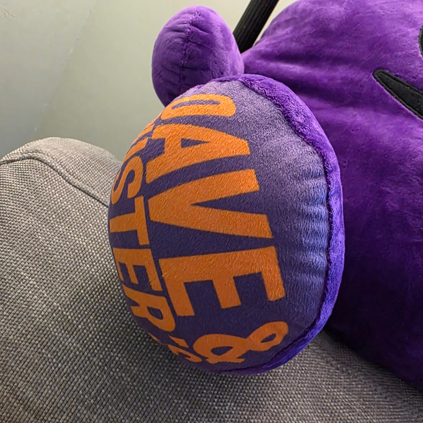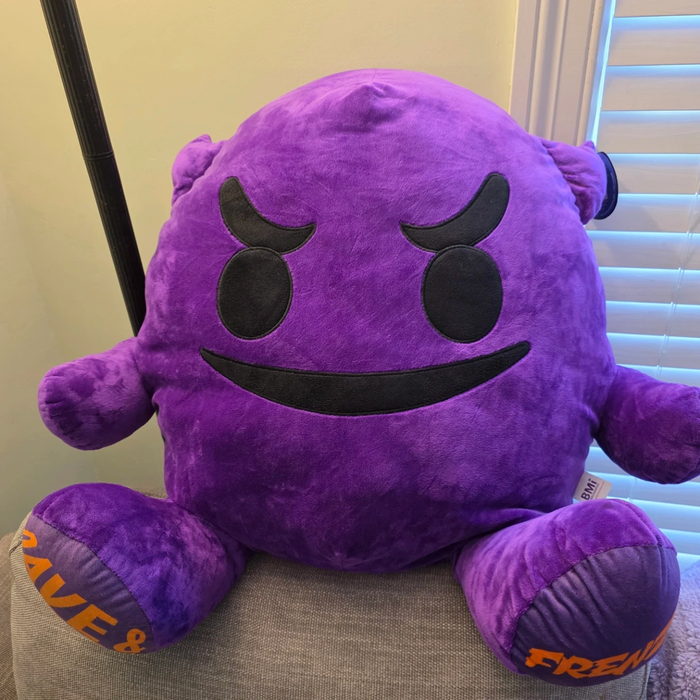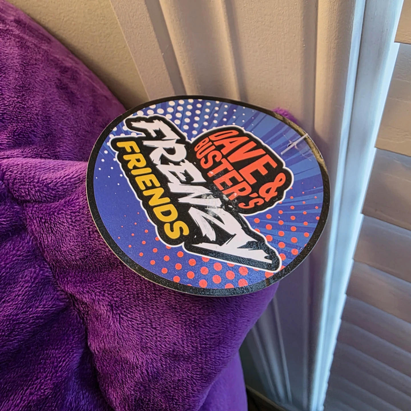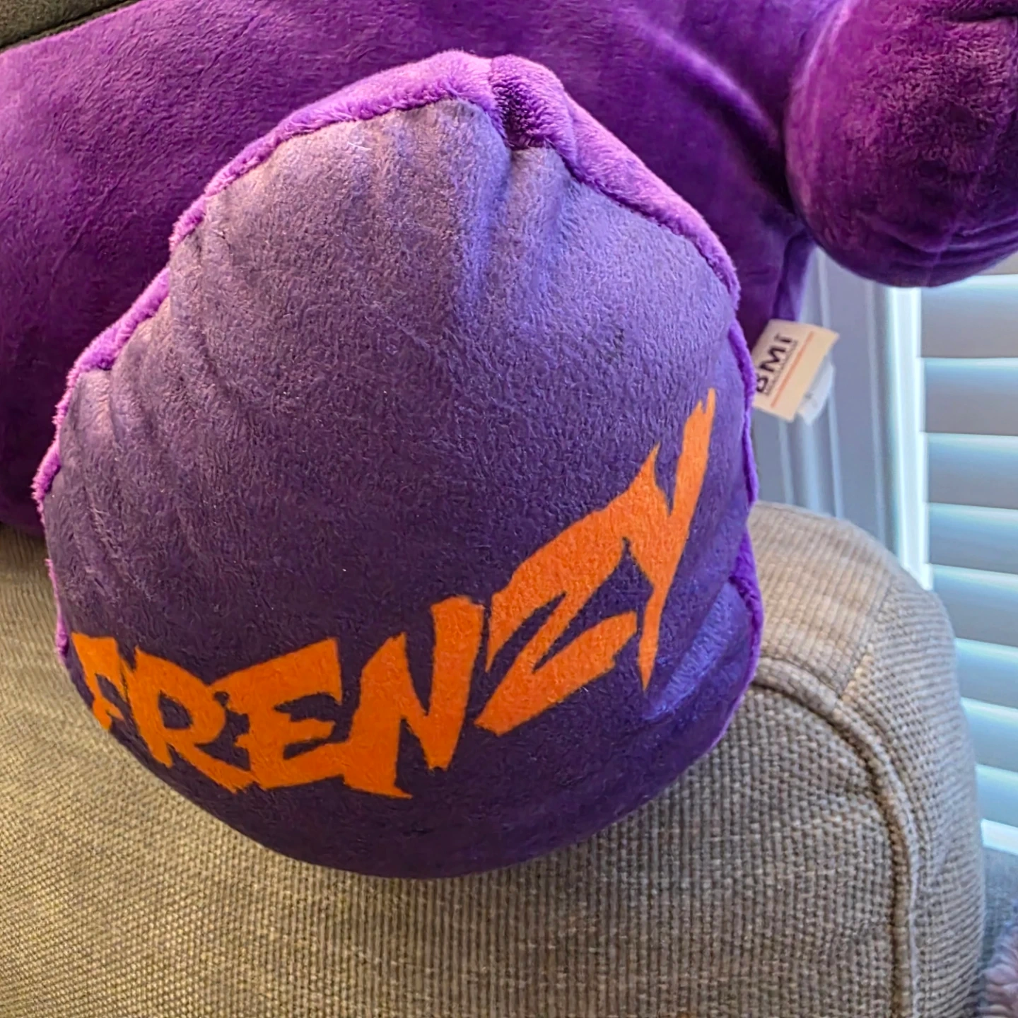 This is a purple plush toy from Dave & Buster's Friends. It has the 'Frenzy' name printed on its feet. Made of soft plush material.