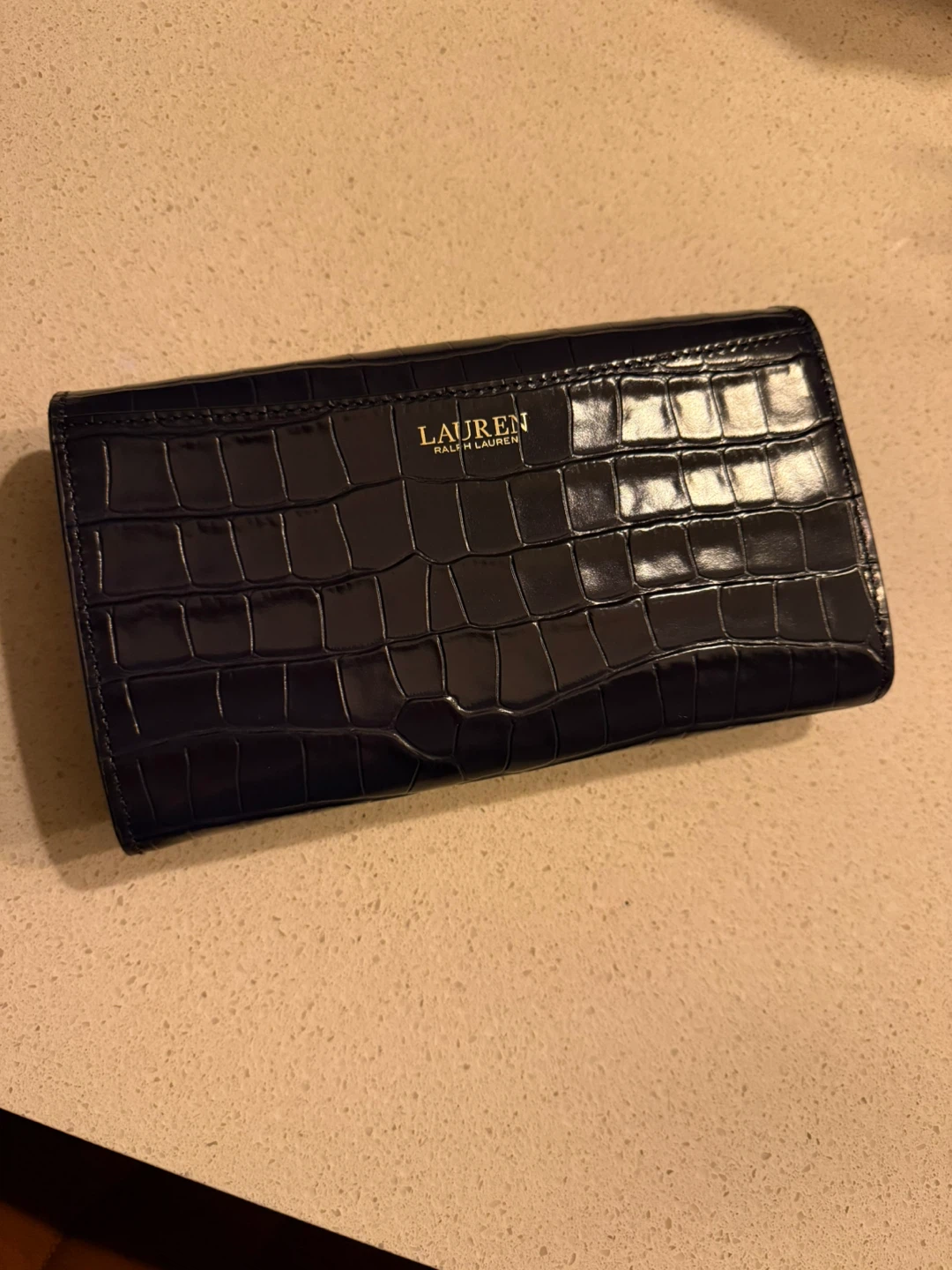 Selling a Ralph Lauren clutch in a beautiful croc-embossed leather. It's a stylish and practical accessory to keep your essentials organized. Perfect for everyday use or a night out!