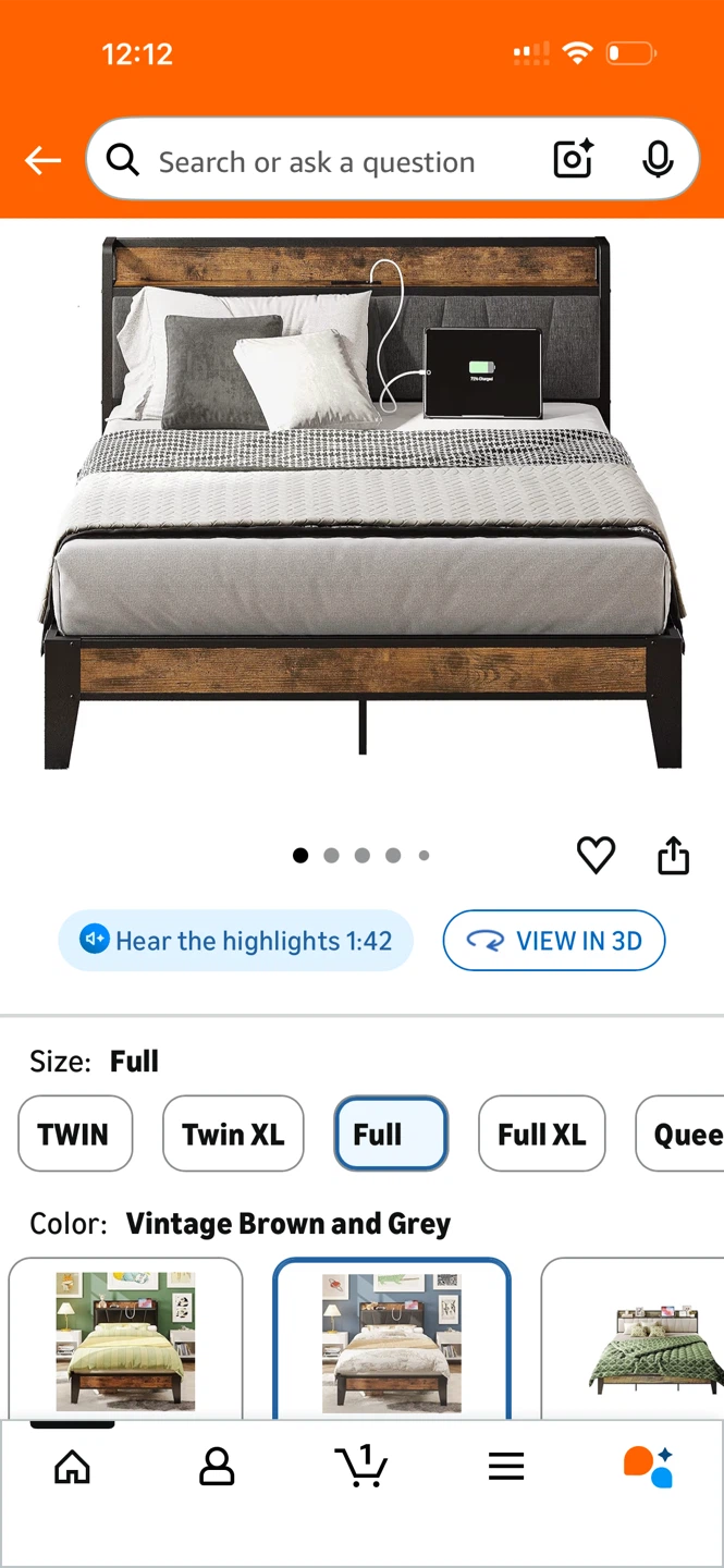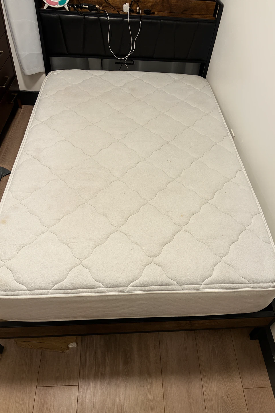 Selling a full-size bed frame in vintage brown and grey. It's in good condition and ready for a new home! Perfect for adding a touch of rustic charm to your bedroom