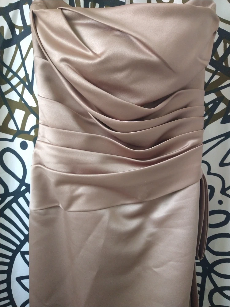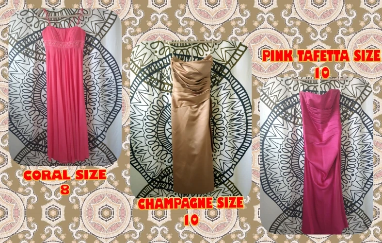 87The David's Bridal Coral Size 8 stunning chiffon dress featuring beautiful empire waist with shall included This Dress is perfect for weddings Bridesmaids, School Dances etc This dress is a stunning choice for any formal occasions, featuring The beaded empire waist adds a touch of elegance to the dress and makes it perfect for any special occasion. Made from chiffon material and designed with a sleeveless style, this dress is perfect for bridesmaids or prom attendees looking for a sophisticated and stylish look. Sewn in bra cups for extra enhancement and support.The coral color adds a touch of vibrancy to the ensemble, making it a standout choice for any wedding or special event. Made by the reputable designer brand David's Bridal, this dress is sure to make a statement. 44"-45" from top to bottom Designer Bill Levkoff Champaign Strapless Satin Gown Size 10 The product is a stunning champagne strapless gown from the designer Bill Levkoff. This Prom Dress/ wedding/ formal bridesmaid dress in size 10 features a satin fabric with a polyester material, making it perfect for all seasons. Sewn in bra cups for extra enhancement and support. The elegant gown has a zipper closure and is fully lined for a luxurious feel, making it a great choice for any special occasion. Made in China, this beautiful gown exudes sophistication and grace, making it a timeless addition to any wardrobe This David's Bridal Pink Taffeta Size 10 strapless corset ruched satin ball gown dress Designed for bridesmaids, weddings, dances or any type of special occasion. The dress features a sleeveless style and is made of polyester, with bra cups included for added support. The dress features a strapless neckline, intricate embroidery and ruffle detailing, full length and a flattering ball gown silhouette.features a ruched bodice and a long, flowing skirt. The style has also been described as a "strapless corset bridesmaids ruched satin ball gown dress The dress is made in Sri Lanka and belongs to the speciality category of wedding and formal occasion dresses, it exudes sophistication and charm. It is in great condition. ALL ONLY WORN ONCE YEARS AGO FOR BRIDESMAIDS DRESSES BUT WOULD JUST NEED A GOOD STEAM CLEAN FROM SITTING!!