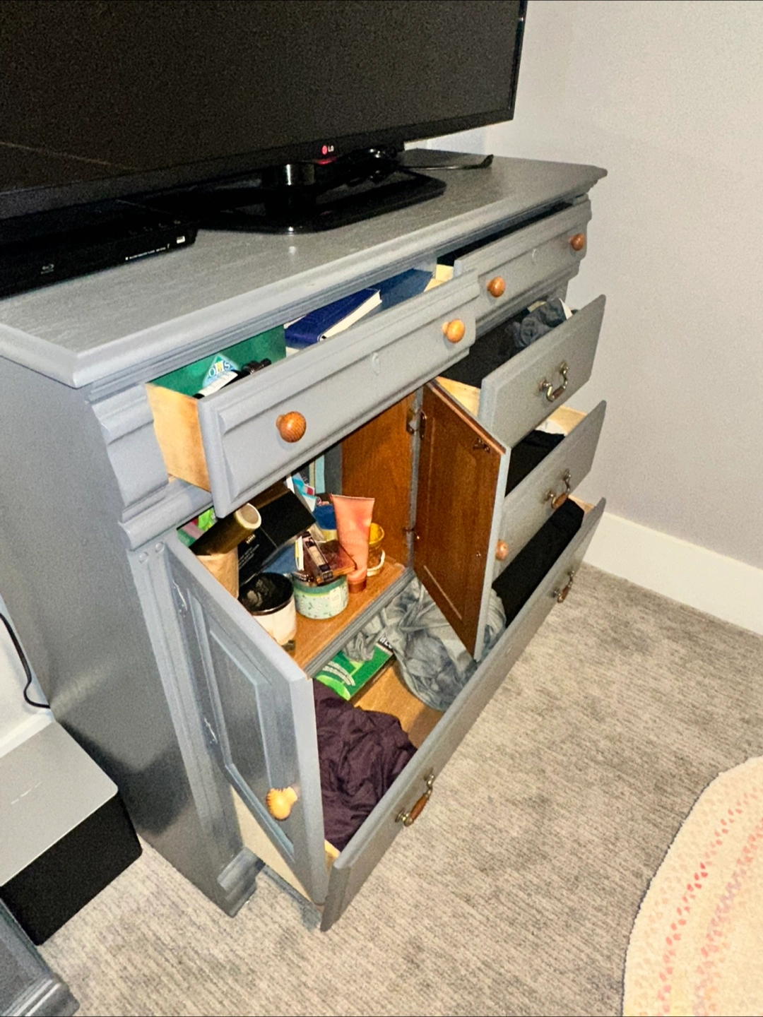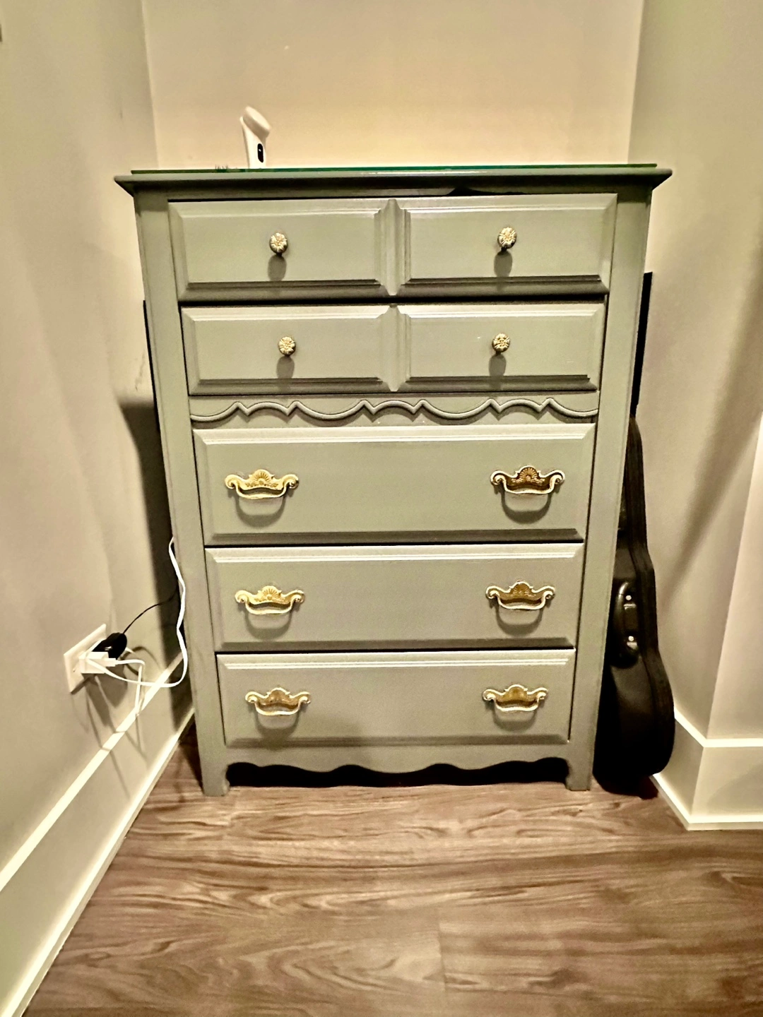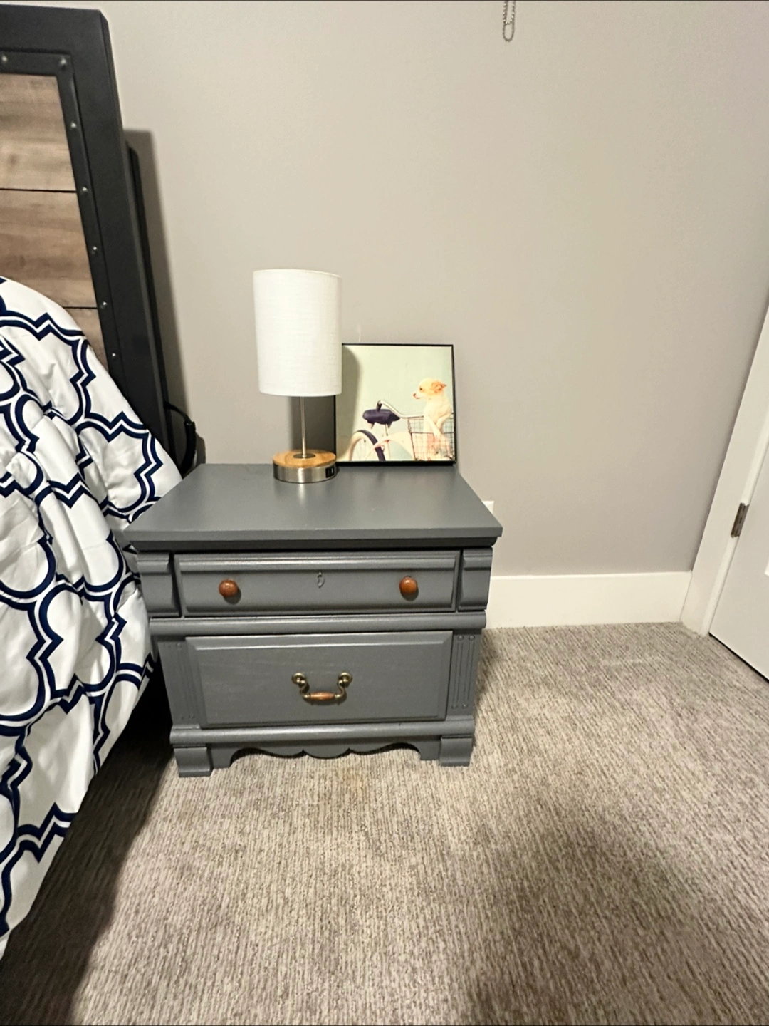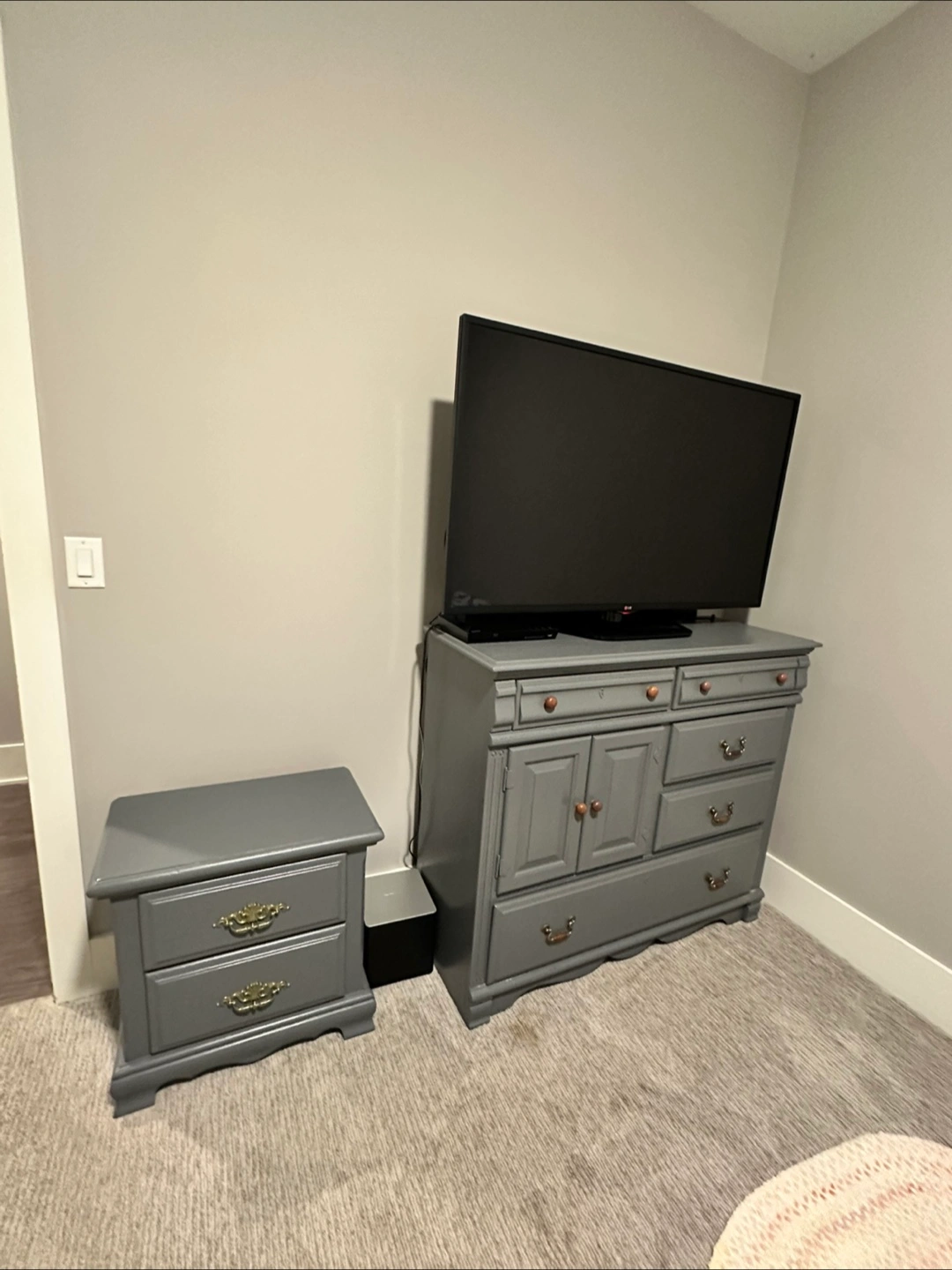 Moving Sale - Selling a matching set of Broyhill gray painted wood furniture! Includes a nightstand and three dressers. They're in great condition and would look great in any bedroom. 3 Dressers (Long & Tall with Custom Tempered Glass Tops, Solid Wood Construction) & 4 End Tables - sets of two each. Premium Quality, Timeless Craftsmanship. TONS of storage space. Swap out the knobs for a different look. Tall dresser measures approximately 48 inches in length, 17 inches wide and 48 inches long. Solid wood. Short wide l dresser with a glass top. It measures approximately 54 inches in length, 17 inches in width, and 30 inches in height. 2nd tall dresser is 48 inches in length, 35 inches in width, and 17 inches in height. Pick-Up Only at 16th & Halsted, Just South of UIC Campus. Solid construction all natural wood. Pick up in Chicago SMOKE FREE HOME. Check out my other listings BELOW. I’m moving out of the country and need to sell 3000 SF of furniture out of a newer home. Check out this ‘Dyson V7 Animal Stick Vacuum’ on Karrot! The local community marketplace app: https://ca.karrotmarket.com/buy-sell/6126075 Check out this ‘28 Bottle Wine Refrigerator - 16.9" x 17.7" x 33.1"’ on Karrot! The local community marketplace app: https://ca.karrotmarket.com/buy-sell/6036860 Check out this ‘Sonos Arc, Sub G3 & (QTY 2) One SL US (Black)’ on Karrot! The local community marketplace app: https://ca.karrotmarket.com/buy-sell/5951236 Check out this ‘Thomasville Tisdale Modular Sectional Dark Gray’ on Karrot! The local community marketplace app: https://ca.karrotmarket.com/buy-sell/6035876 Check out this ‘3 Dressers plus + 4 matching End Tables - Glass Tops’ on Karrot! The local community marketplace app: https://ca.karrotmarket.com/buy-sell/6075188 Check out this ‘Tundra Hut Portable Sauna - XL Size’ on Karrot! The local community marketplace app: https://ca.karrotmarket.com/buy-sell/6092441 Check out this ‘Four (4) Ultra Comfort XL Folding Chairs’ on Karrot! The local community marketplace app: https://ca.karrotmarket.com/buy-sell/6091720 Check out this ‘8ft Fold-in-Half Black Banquet Table’ on Karrot! The local community marketplace app: https://ca.karrotmarket.com/buy-sell/6091688 Check out this ‘Wood and Metal Style Bed Frame + Metal Box Spring’ on Karrot! The local community marketplace app: https://ca.karrotmarket.com/buy-sell/6037014 Check out this ‘13 Pairs - OG AIR Jordan 1 Mid - Epic Bundle -Size 14’ on Karrot! The local community marketplace app: https://ca.karrotmarket.com/buy-sell/5950966 Check out this ‘Christian Louboutin Slingback Heels Black Suede Python Size 6.5’ on Karrot! The local community marketplace app: https://ca.karrotmarket.com/buy-sell/6036471 Check out this ‘Gray Leather Sectional Left & Right Facing Chaise Sofa + Ottoman’ on Karrot! The local community marketplace app: https://ca.karrotmarket.com/buy-sell/6036382
