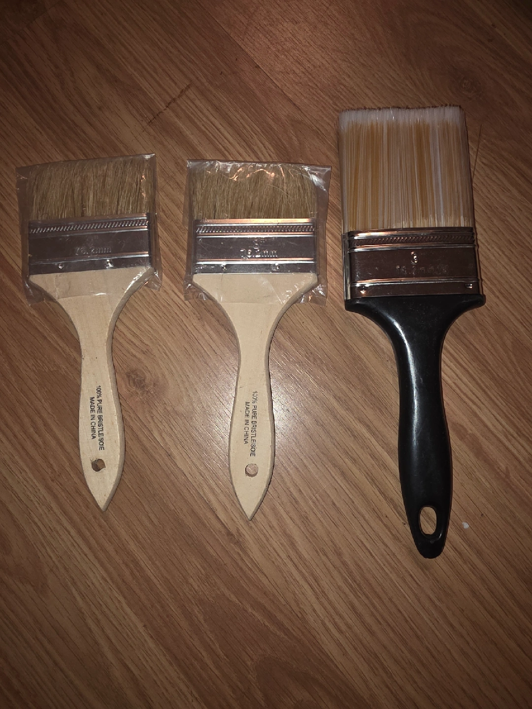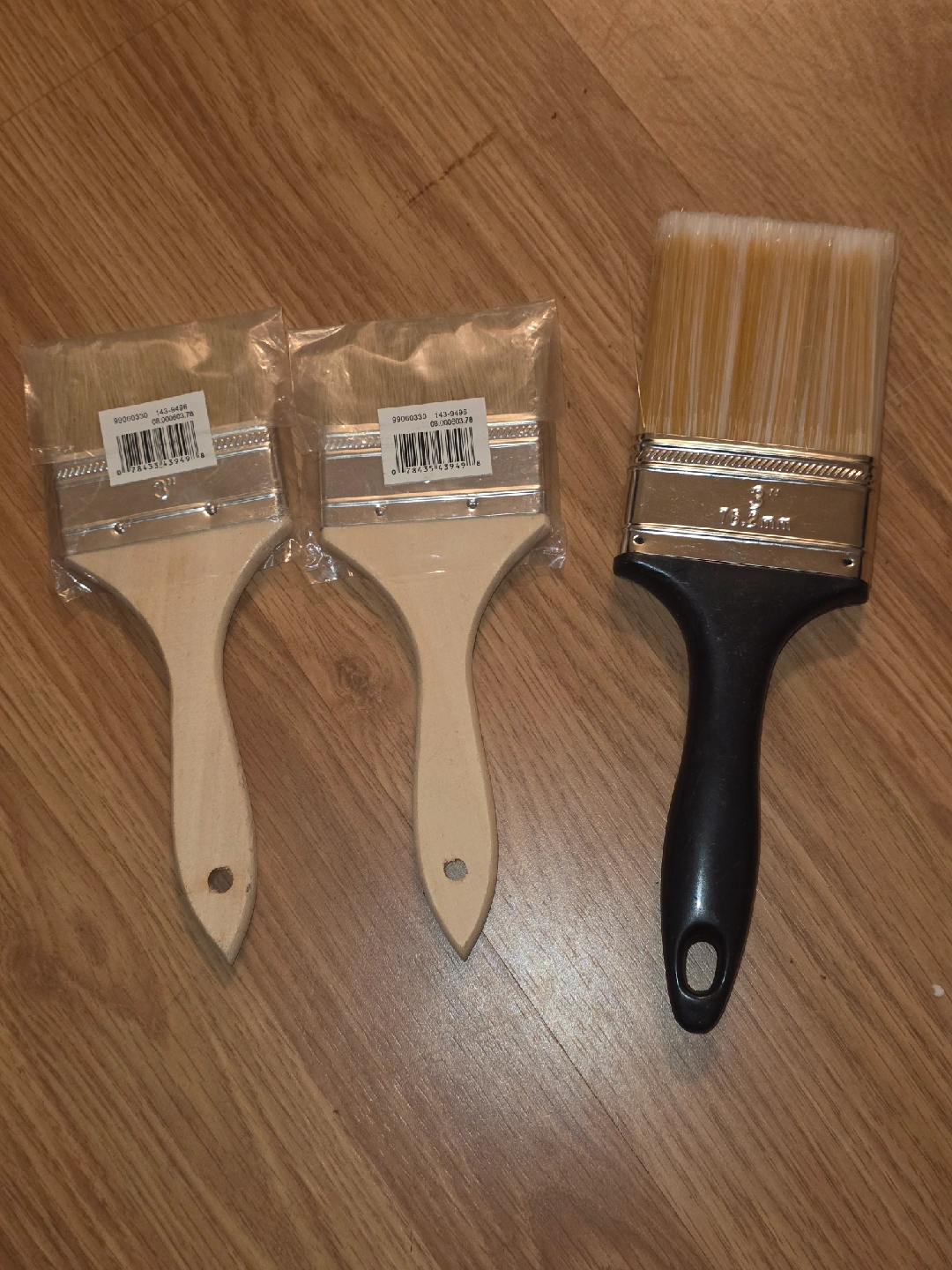 Selling three paint brushes! Two are 1.5" wide and still in their original packaging. The other is 3" wide and has a black handle