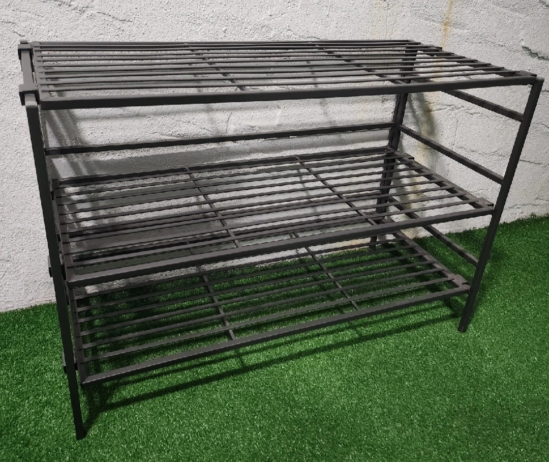 Selling a sturdy 3-tier metal wire shelf. It's perfect for organizing shoes, plants, or anything else you need to store. The black finish gives it a sleek look that fits in any room