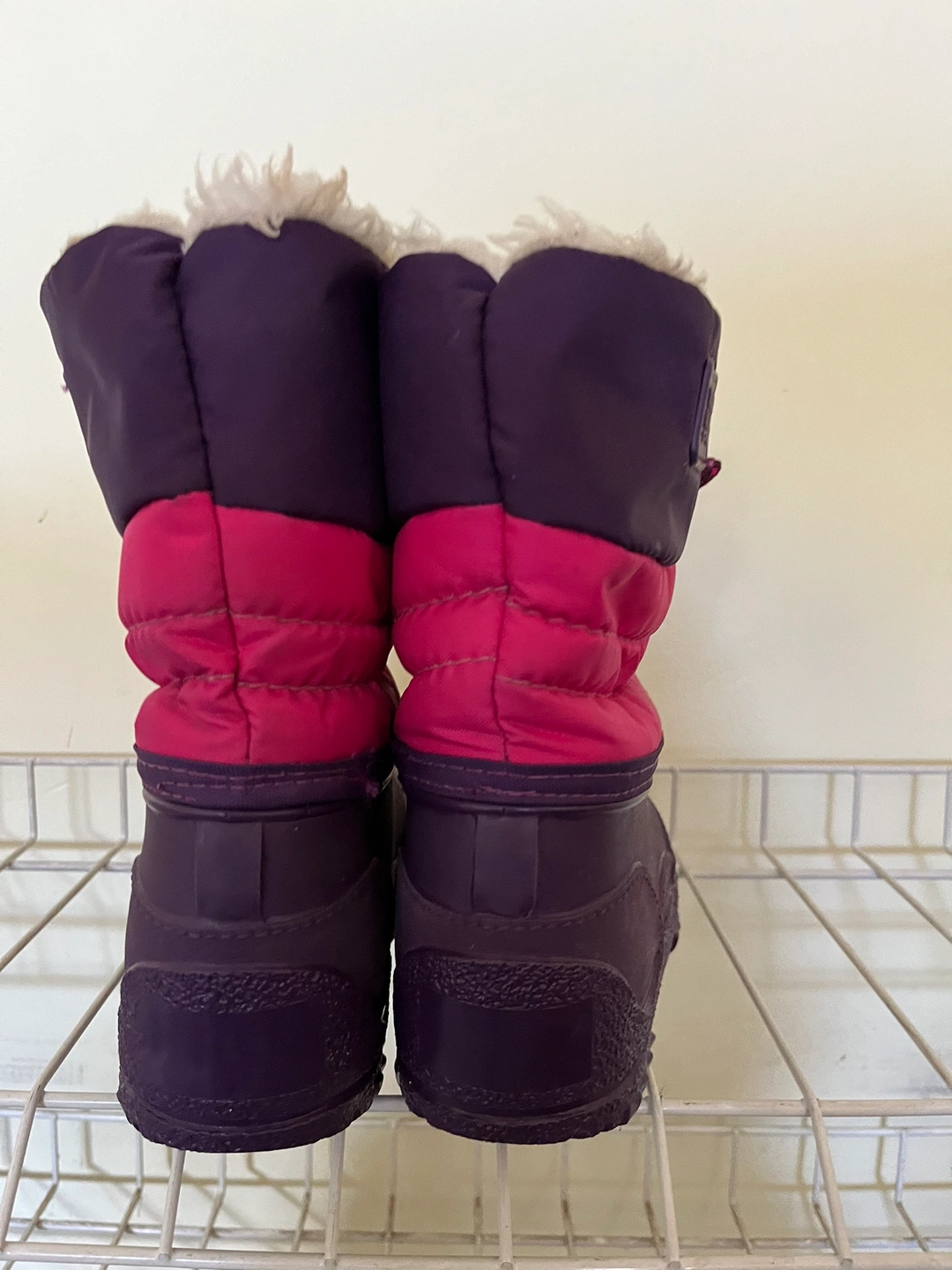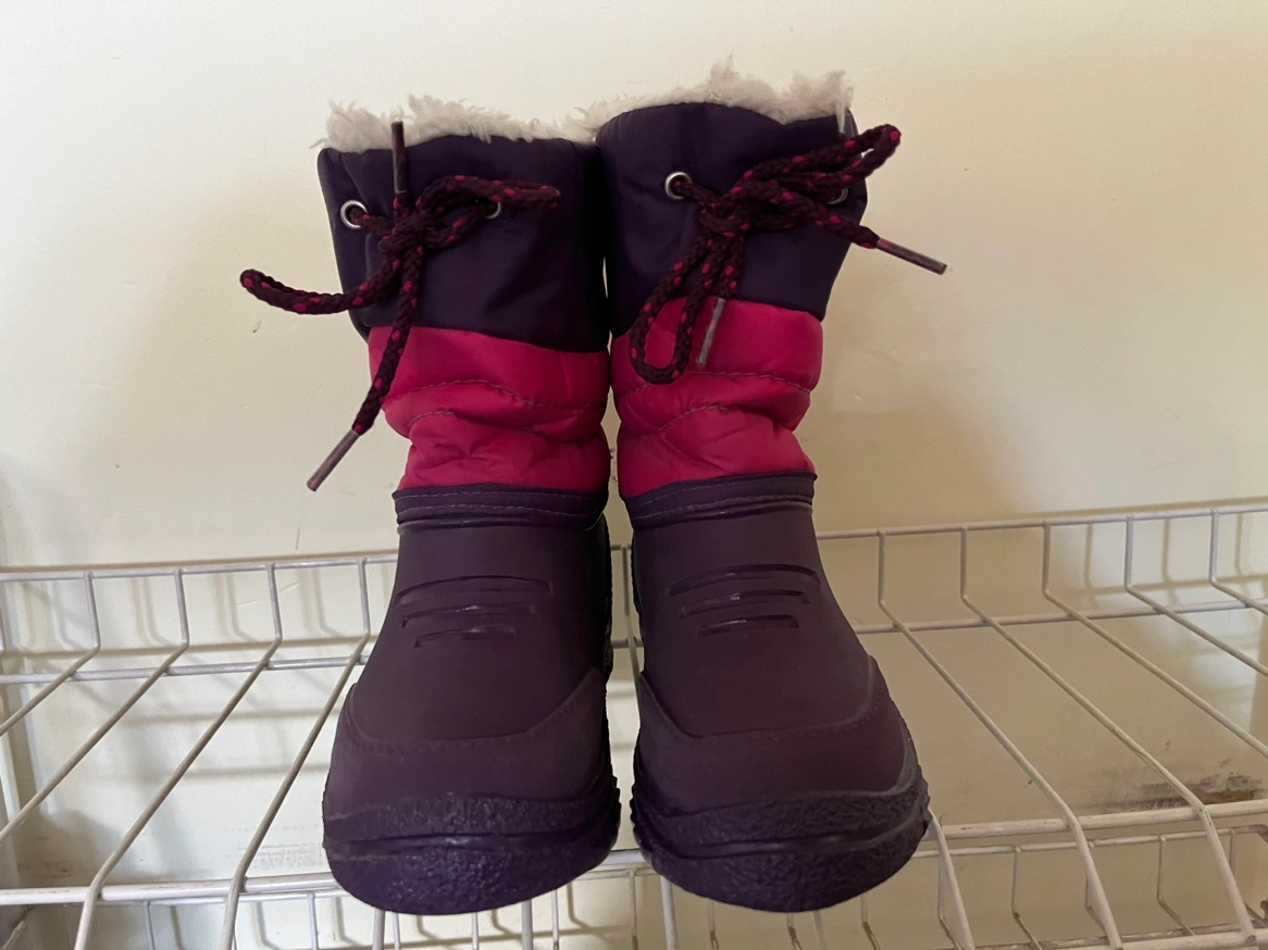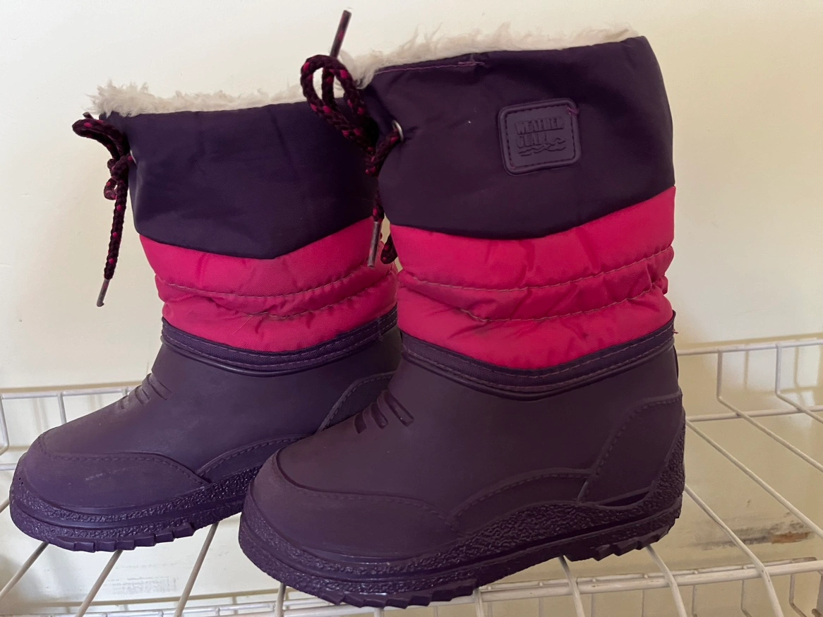 Purple and pink winter boots with a lace-up closure and a white warm lining. In very good conditions. Brand: Weather Guard. If ad is up, the boots are available.