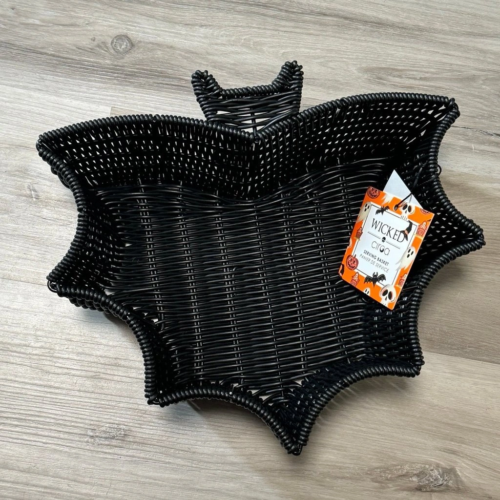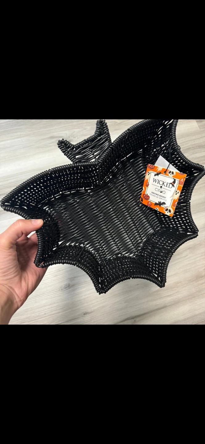 692Black woven bat shaped serving basket. Perfect for Halloween decor or to serve snacks.