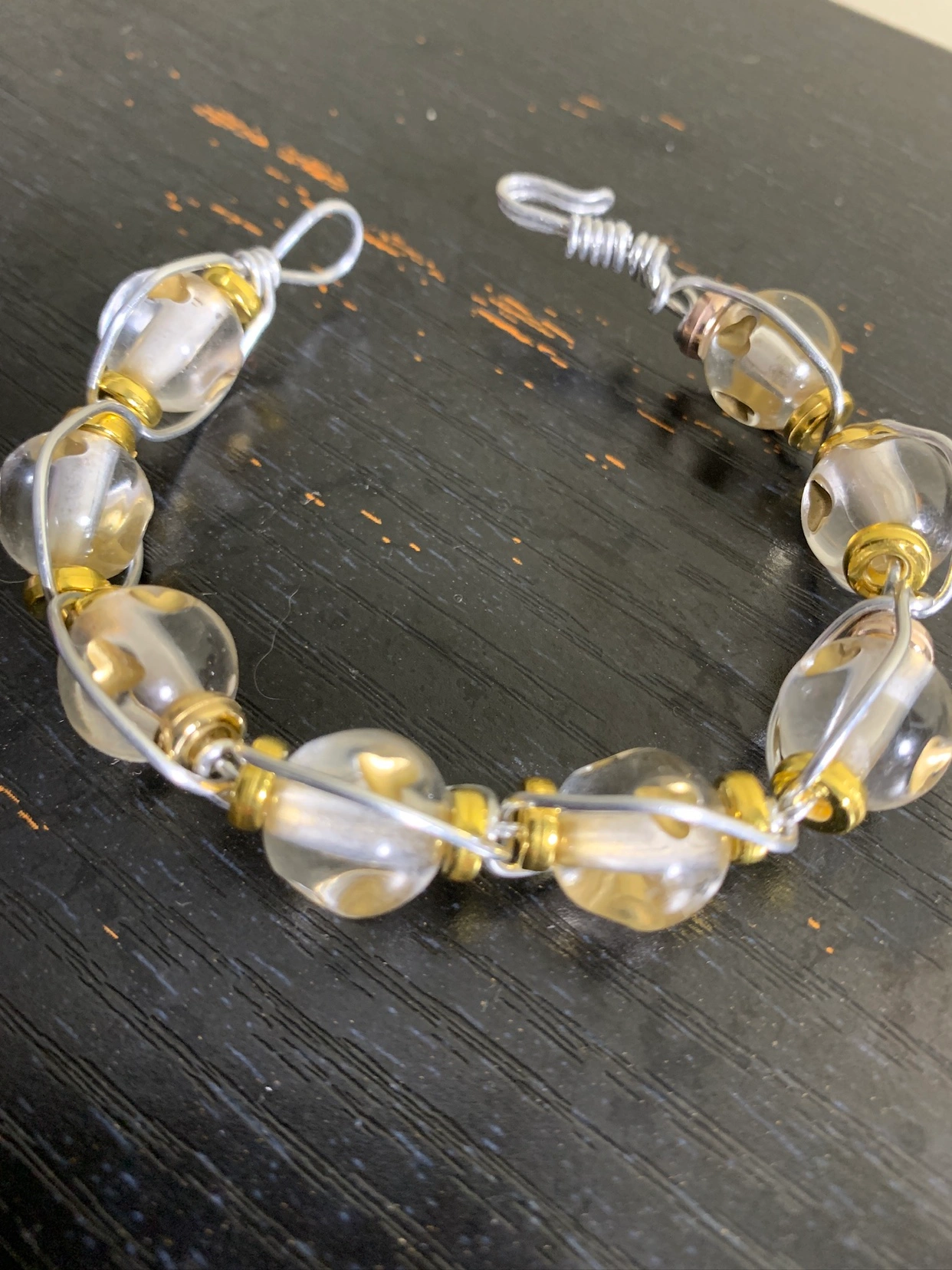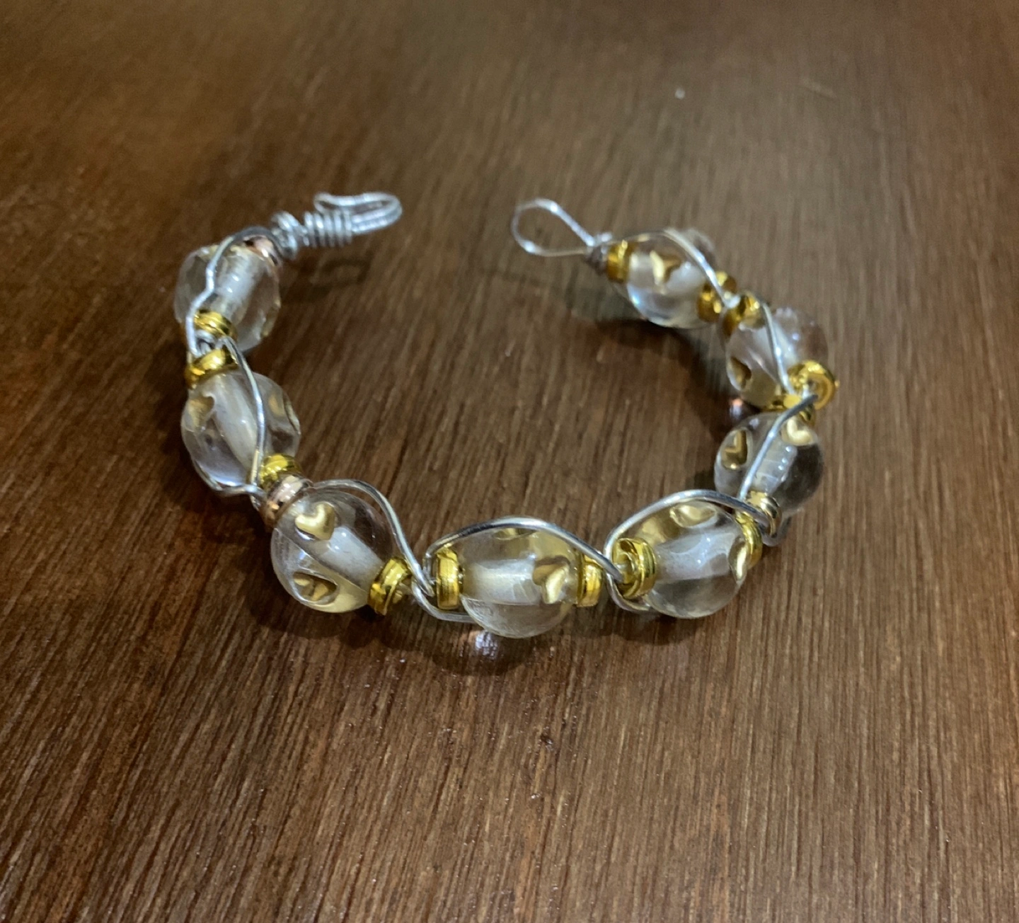Handmade Wire Wrapped Clear and Gold Beads Bracelet