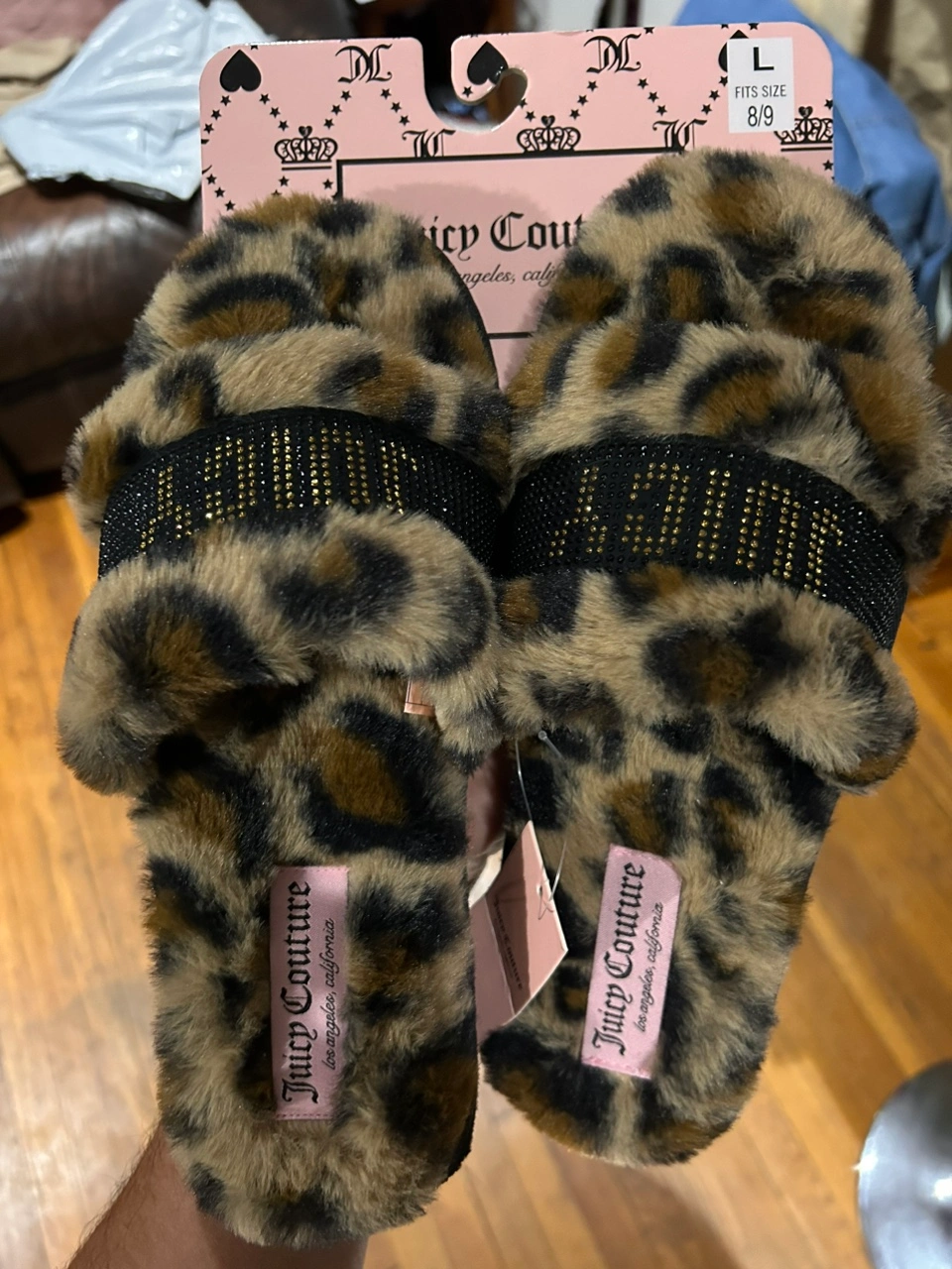 234These are leopard print slippers with a Juicy Couture logo on the strap. They are in great condition and come in size 8/9. New .