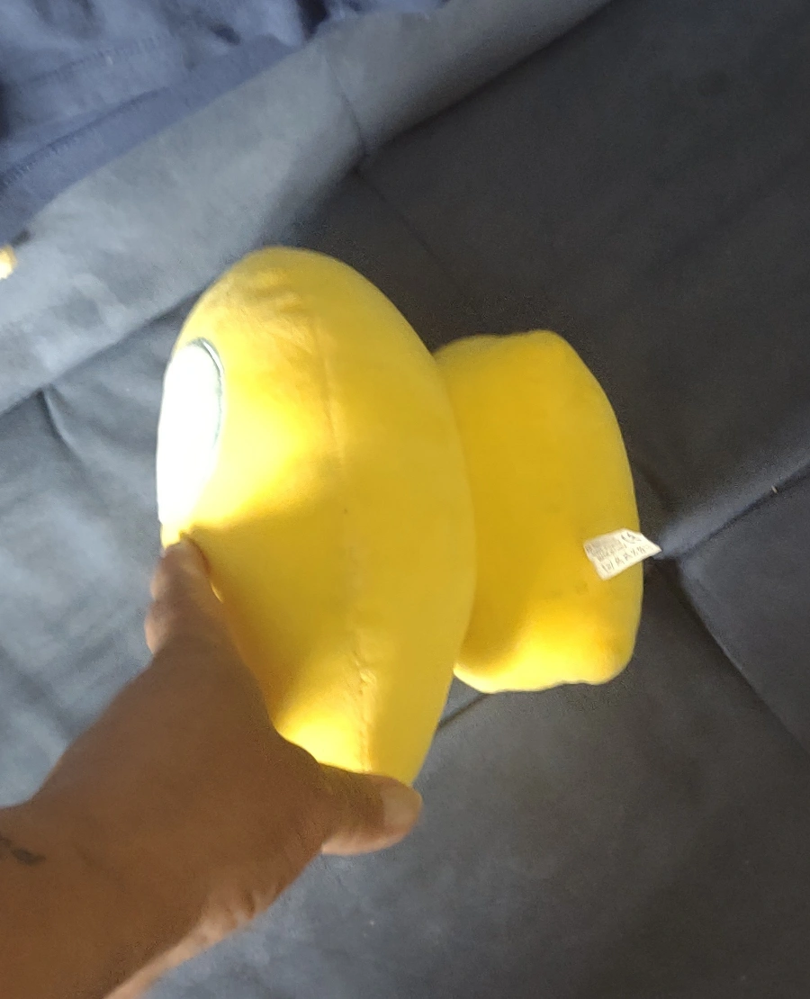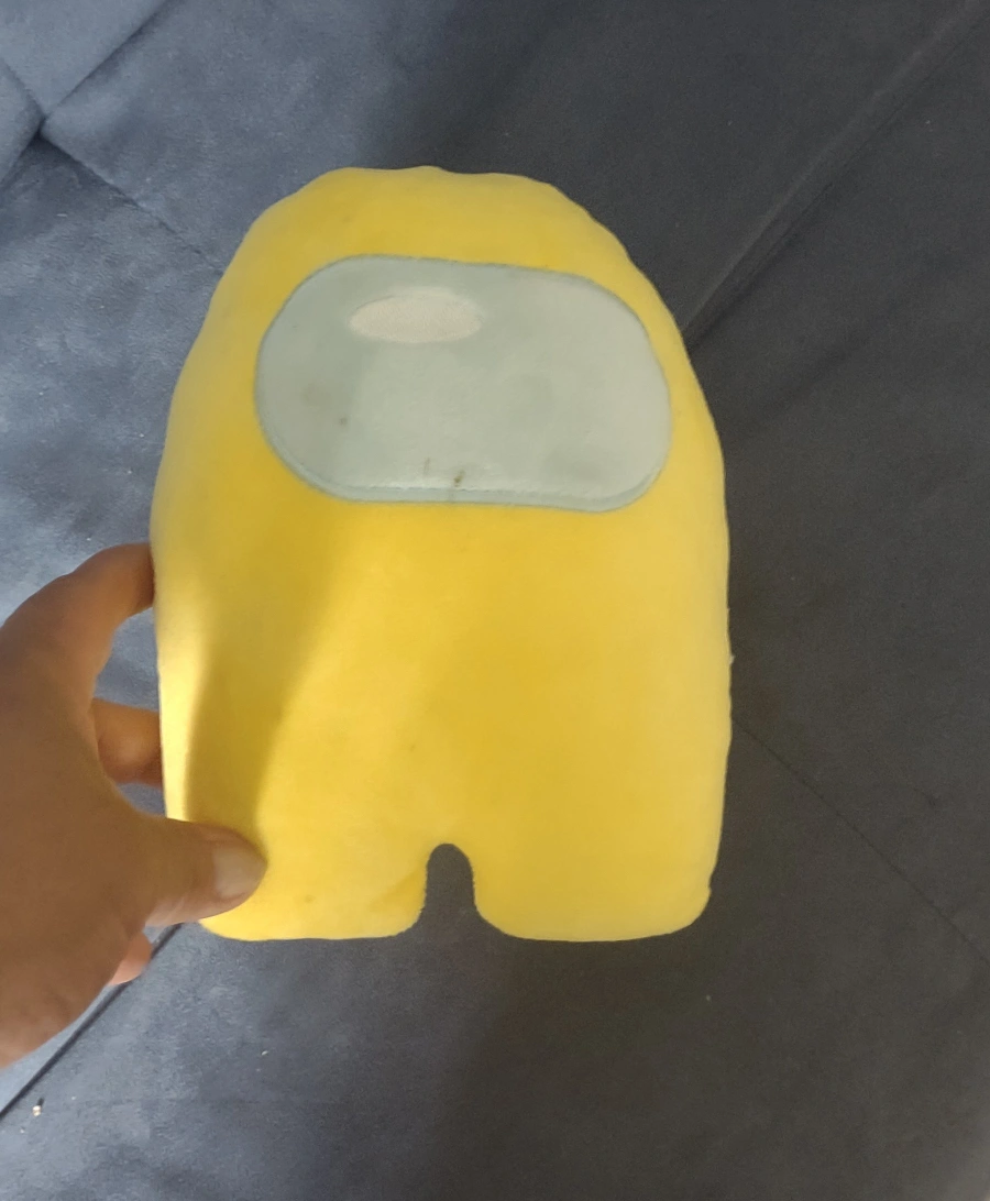 381Pink and Yellow Among Us character plush. Both are approximately 10 inches tall,$8 each $8 cada uno.