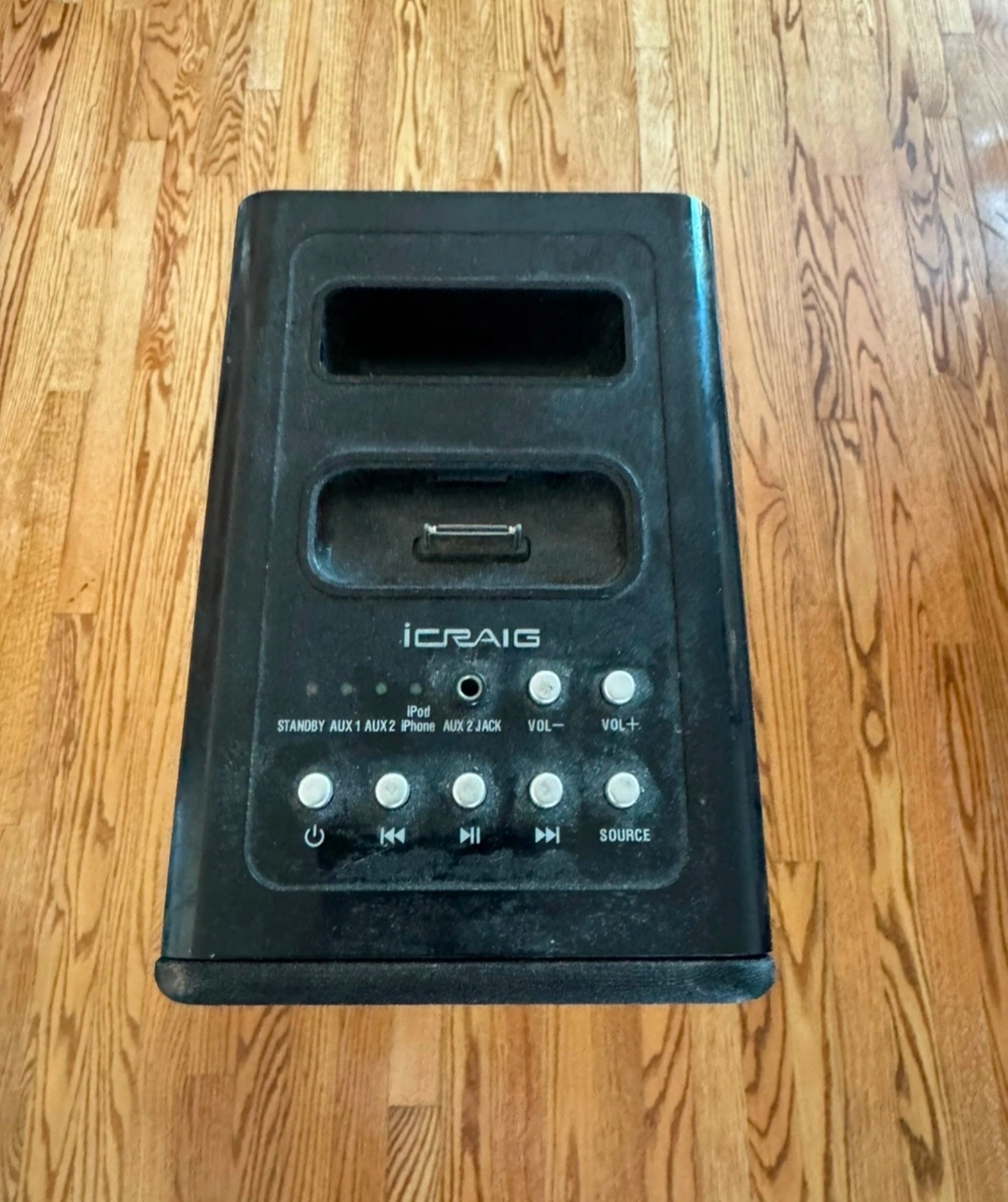 Black iCRAIG speaker system with a docking station for an iPod or phone. #freecycle